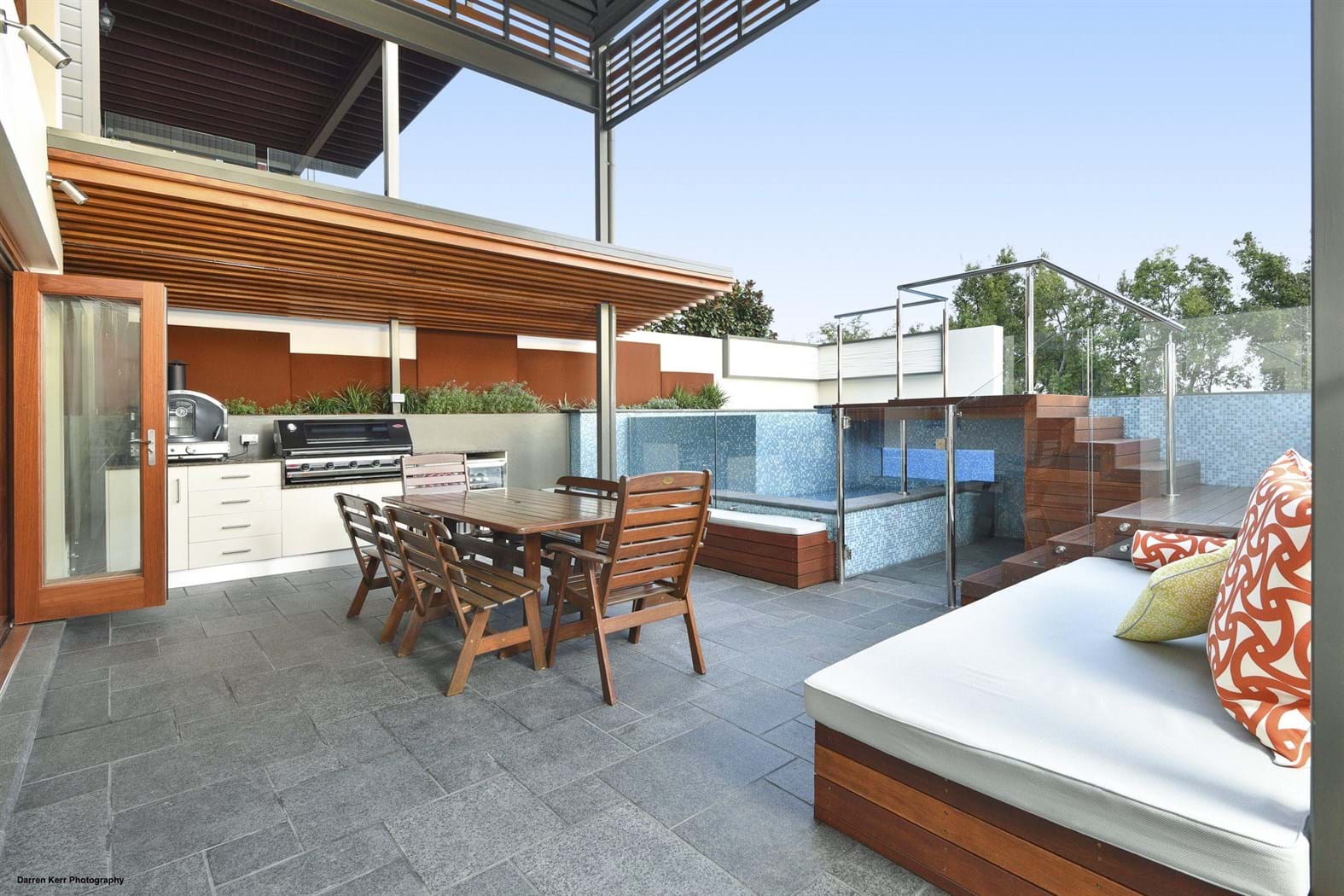 The client had decided that they wanted a swimming pool while the children were still of an age that the whole family could enjoy it together and that the possibility of situating it on the rooftop terrace of their four level home might allow an entire indoor/outdoor entertaining area to be created.