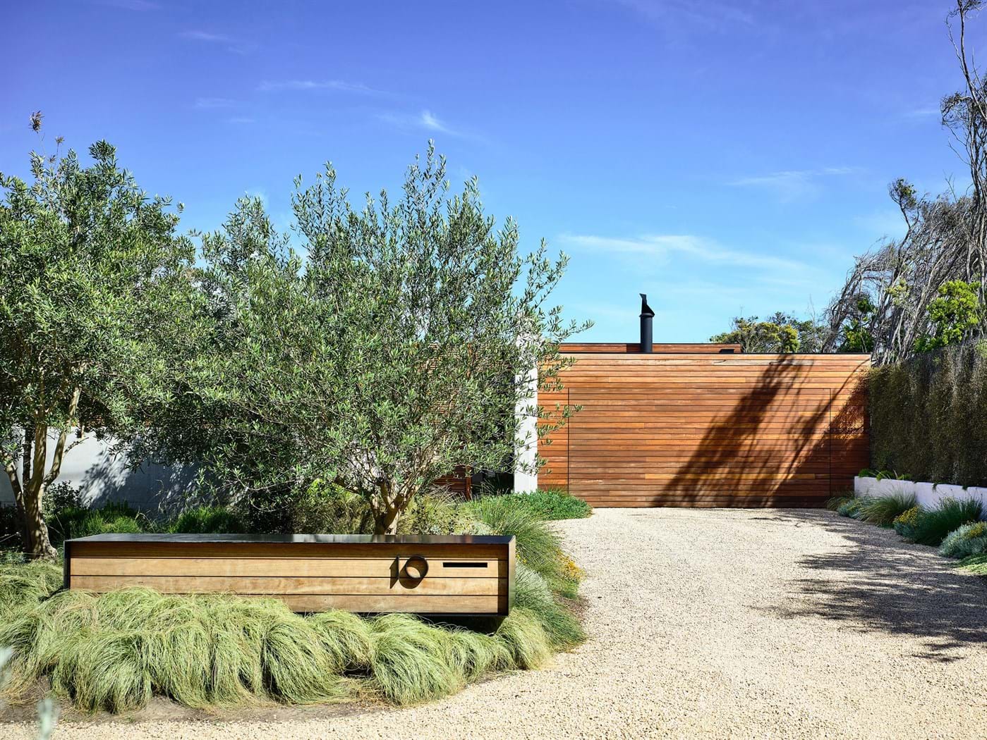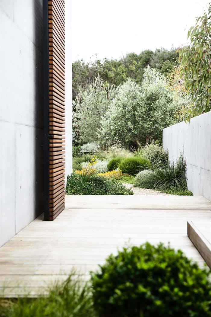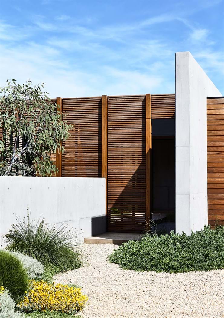 The brief was for a modern beach house, the design is the outcome of a passion for raw materials and hard architectural lines being softened by vibrant and eye catching native plant palettes.