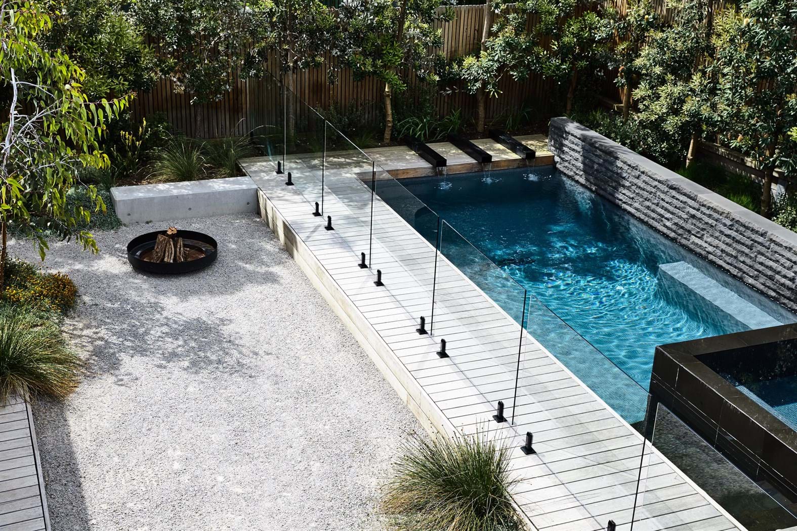 The client wanted a tranquil sanctuary that enabled them to enjoy raising a young family. The block feels very private and allows them to open the whole house up to the elemnets and landscape around them. It was important for the landscape design to connect with the vistas, provide different outdoor rooms for a calming lifestyle that allows them to unwind or entertain.