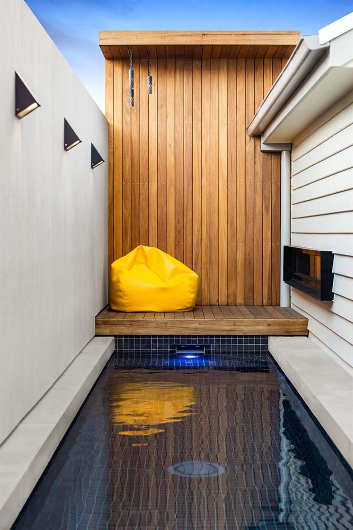 The clients wanted a family pool and spa, an alfresco zone that flowed directly off the home and opportunity to utilise the laneway which they intended to buy later. Privacy was a must and levels were tricky so town planning, report and consent overlooking were all considerations.