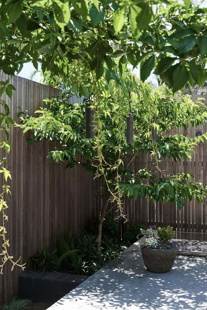 In St Kilda, an off-street car park space is worth up to $100k so the client never wanted to lose it in the design process and they also wanted a garden that was enjoyable to use for different living requirements. The functionality of this garden has not been lost, instead the lines are blurred through the breaking up and softening of the spaces. Layering and overlapping of hard structures has allowed this very small space to have multiple zones to be used for different functions whilst being impactful and soft for the view from inside the home.