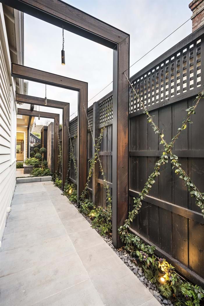 The client had purchased antique doors and it was a must that they be used somehow. The client had her own decorating style and was keen to incorporate her style through her collected treasures. Furthermore, the sideway was an entrance that most of her friends used over and above the front door so this space needed to be made into something special as well, again taking the emphasis away from the neighbour's roof.