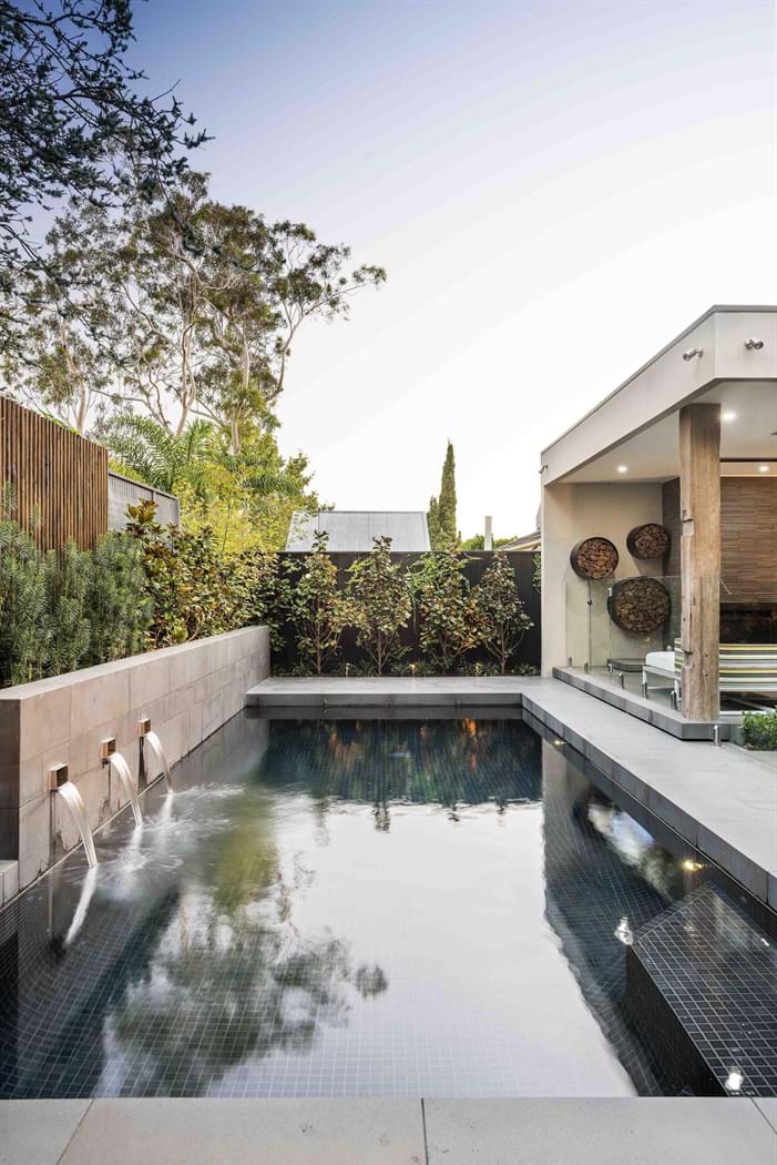 The client wanted to completely renovate her tired, run down and poorly built rear garden and sideway. The pool needed renovating and a complete facelift and the client also wanted an undercover alfresco area to entertain in all year round. A request for an informal dining space, fireplace and outdoor lounge area were high on the list of priorities as well as an improvement to the rear facade of the home.