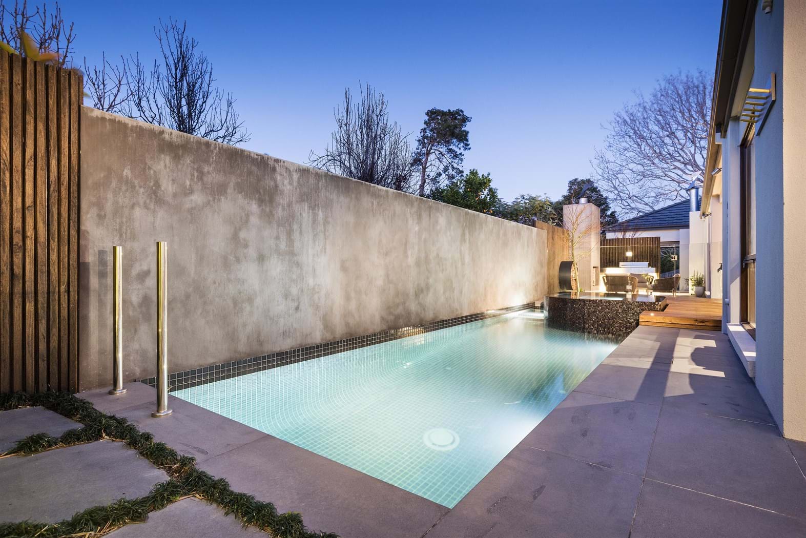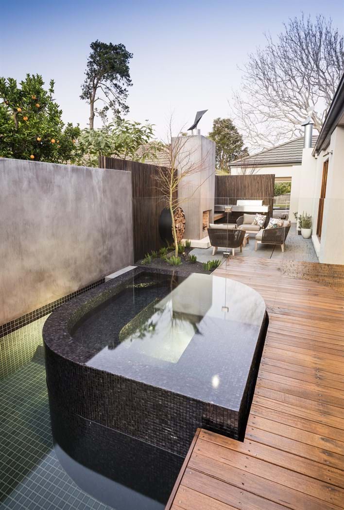 The clients were a family of four who wanted to bring their home up to belong in the high end suburb by improving the garden. The rear space was very tight and they wanted a pool and spa, an extended alfresco zone, a sauna, an outdoor fireplace, lawn area and BBQ zone all in the narrow, somewhat tight space.