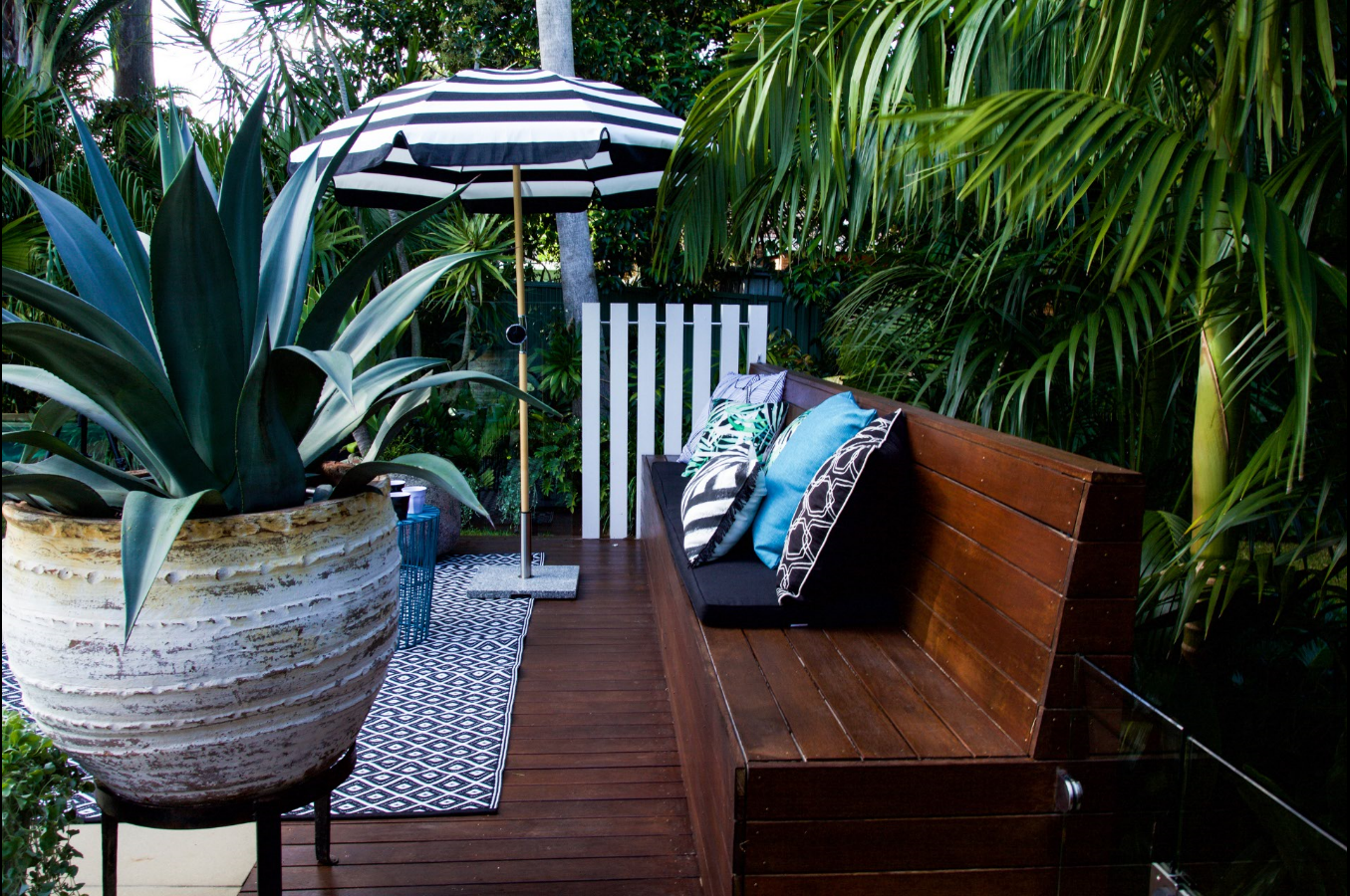 Prepare a design for the backyard to complement the 'Queenslander' style house.