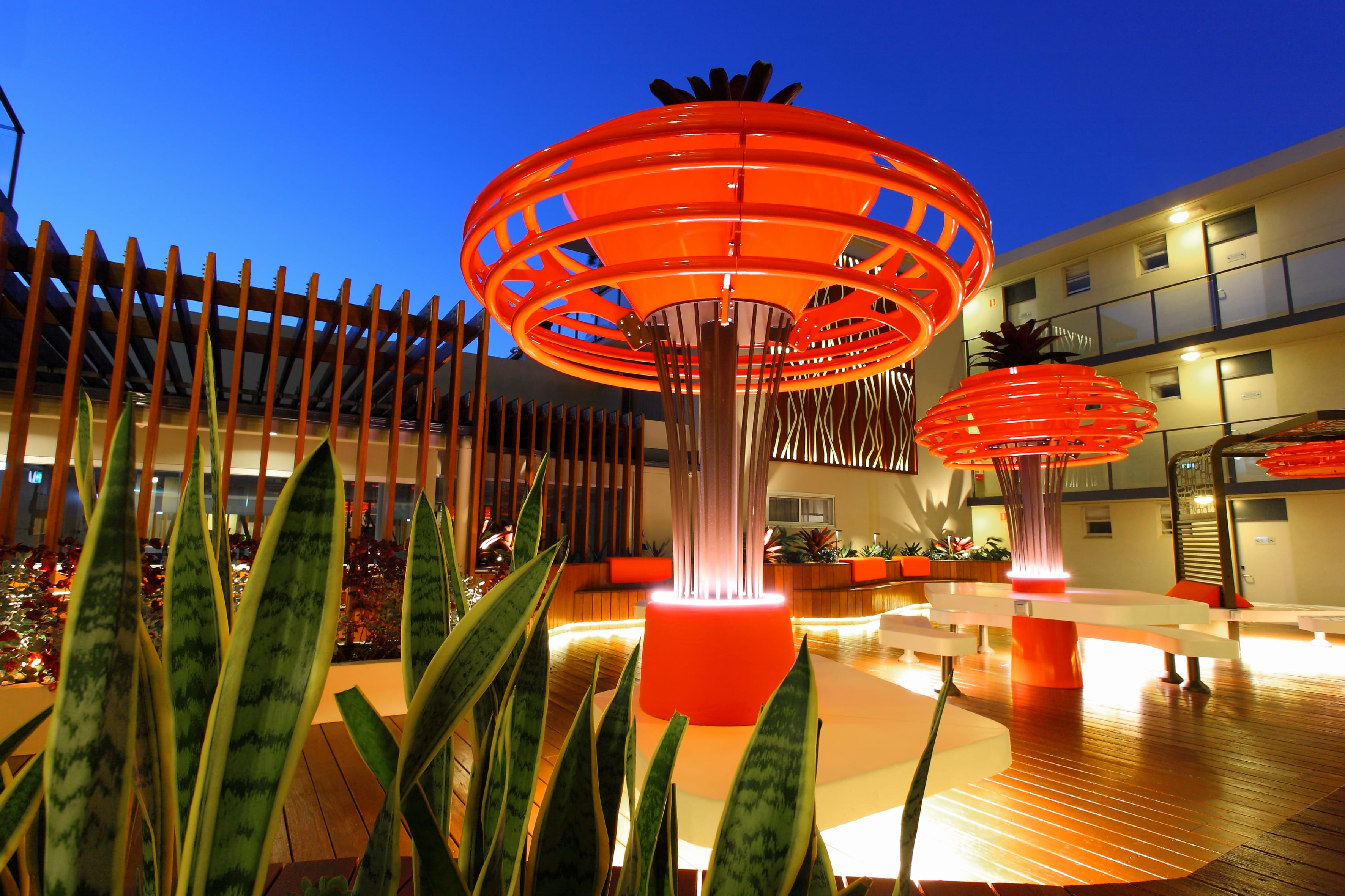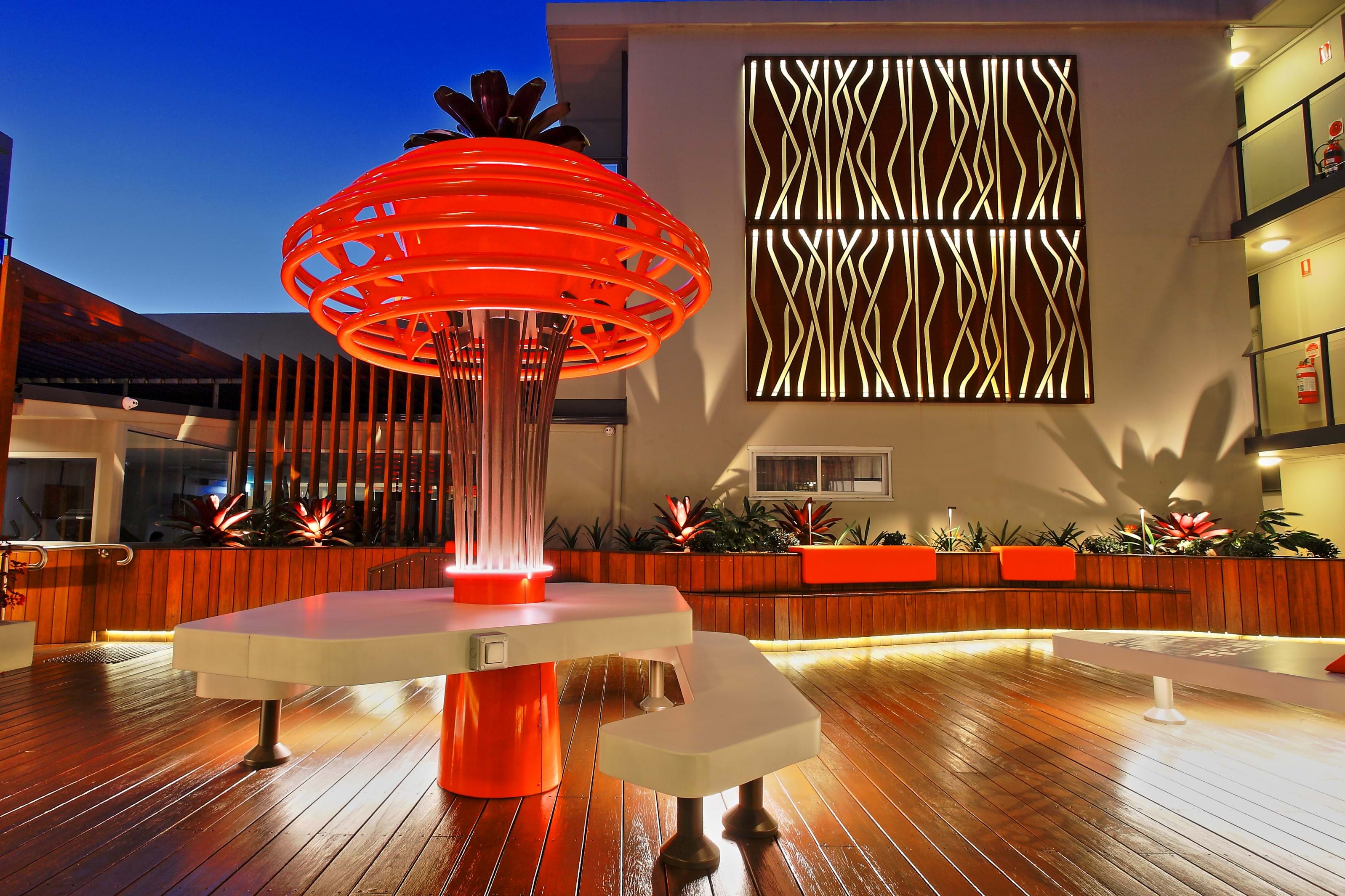 The courtyard within this inner west hotel originally contained an oversized pool which was rarely used. As part of the hotel’s extensive renovation 3 years ago, our client decided to in fill the pool as an attempt to create a more useful and engaging guest space. Sadly, their original attempt resulted in a cold, unusable and lacklustre environment and certainly didn’t compliment the rest of the hotel’s edgy inner west vibe which was suitable for both business and discerning tourist visitors.