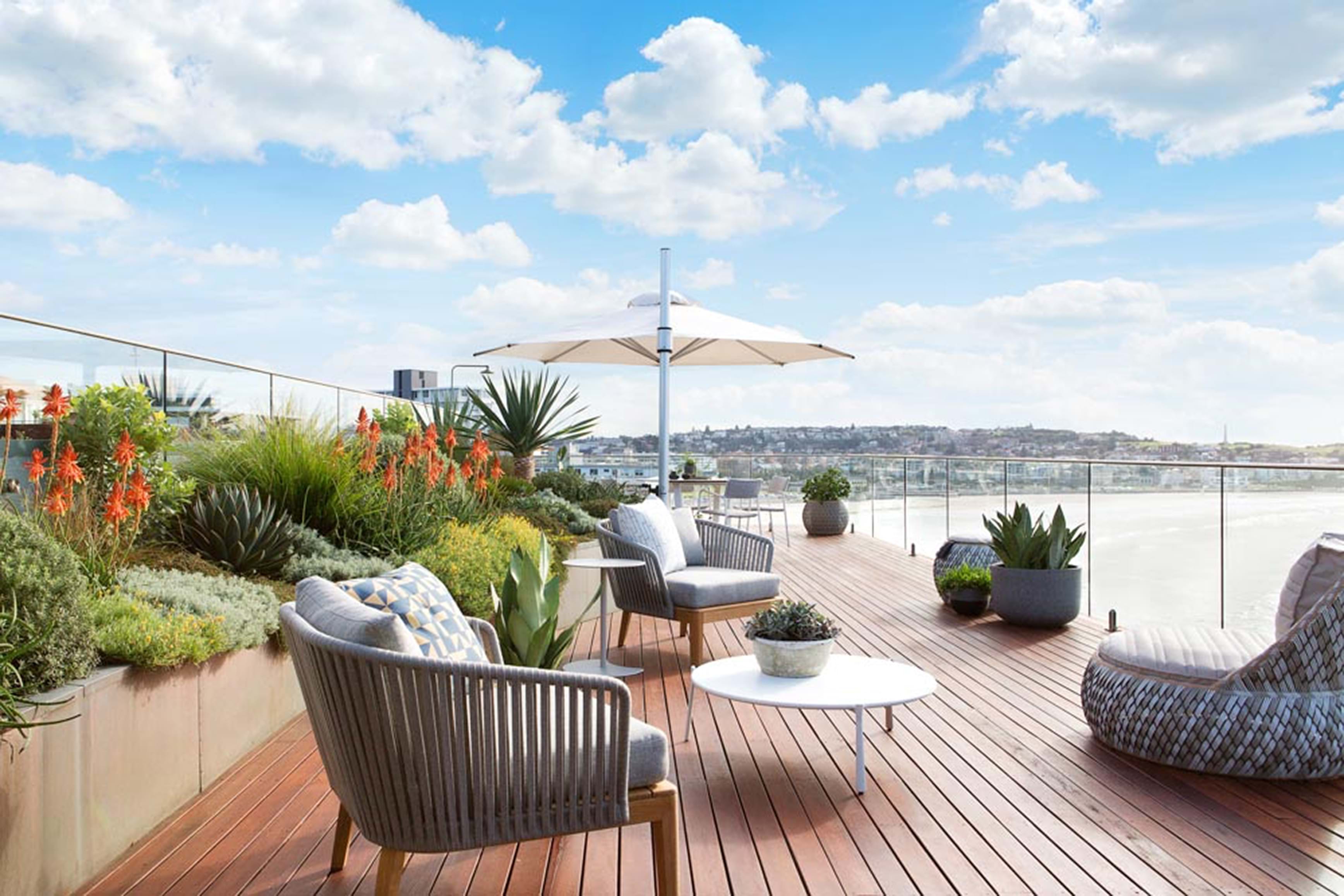 The brief from this client was to create a planting design for a rooftop with spectacular ocean views. The planting was to soften the view back towards other nearby apartment buildings, forming a visual barrier that helps to orientate the space towards the ocean and distract from the buildings behind.