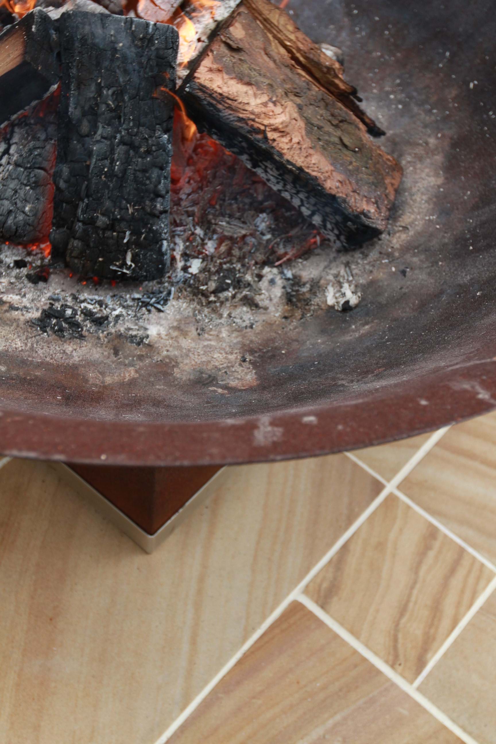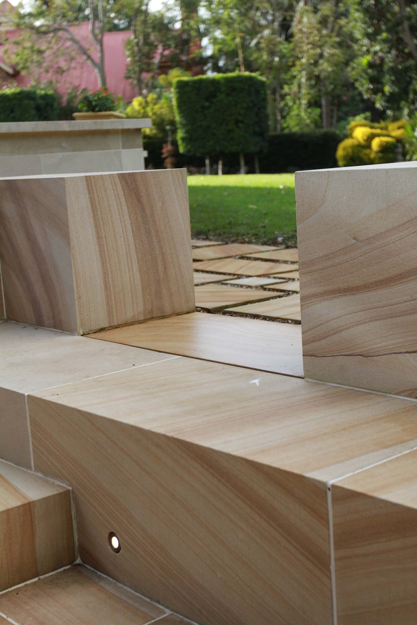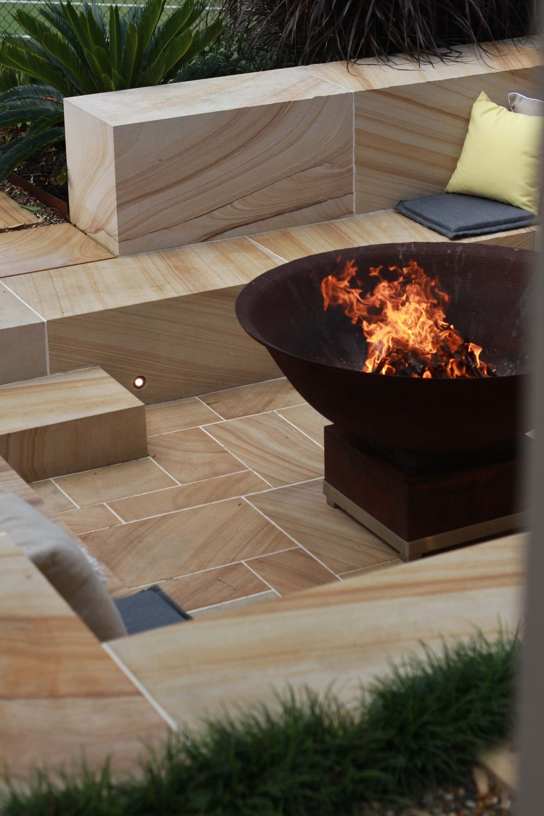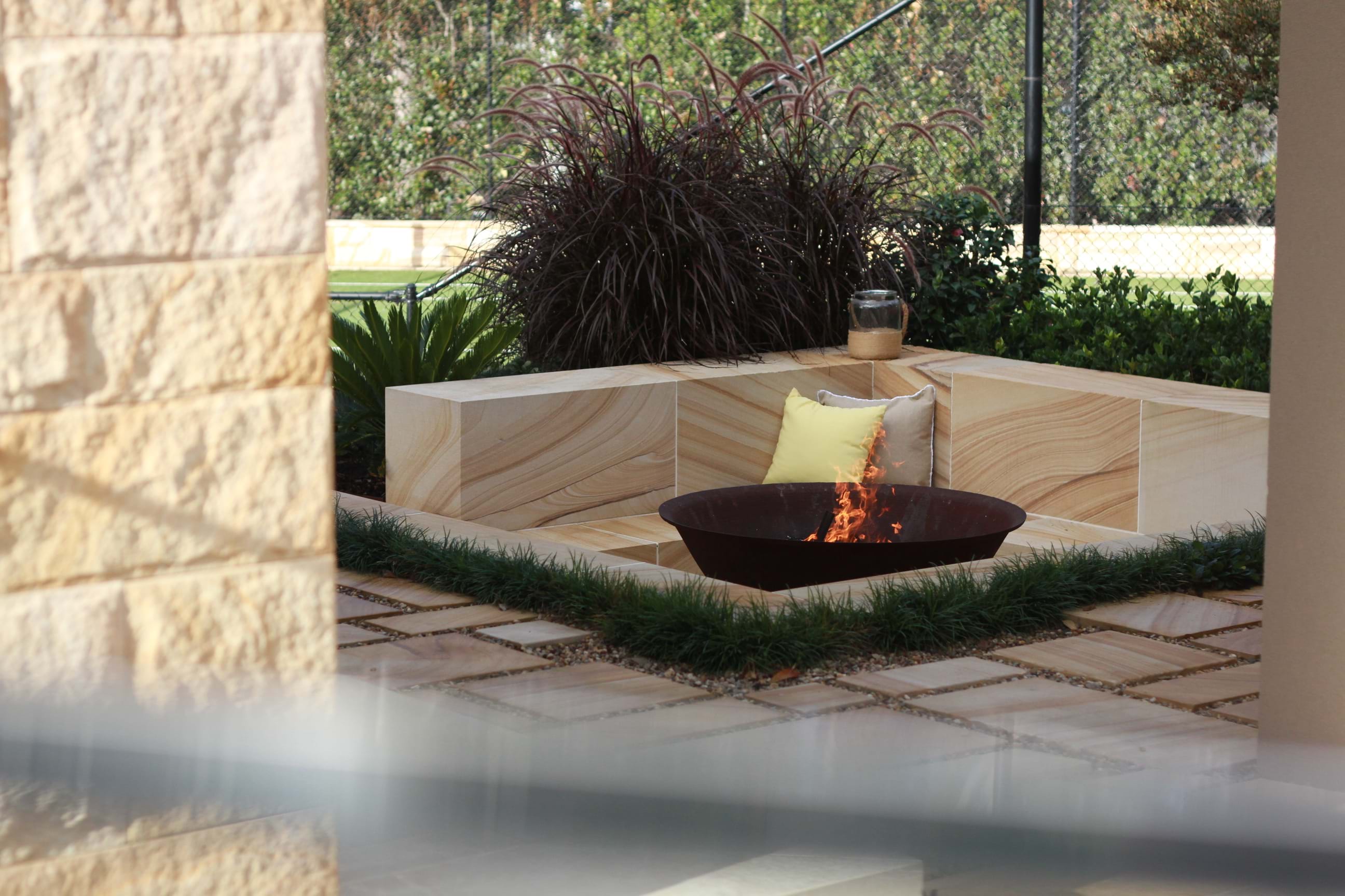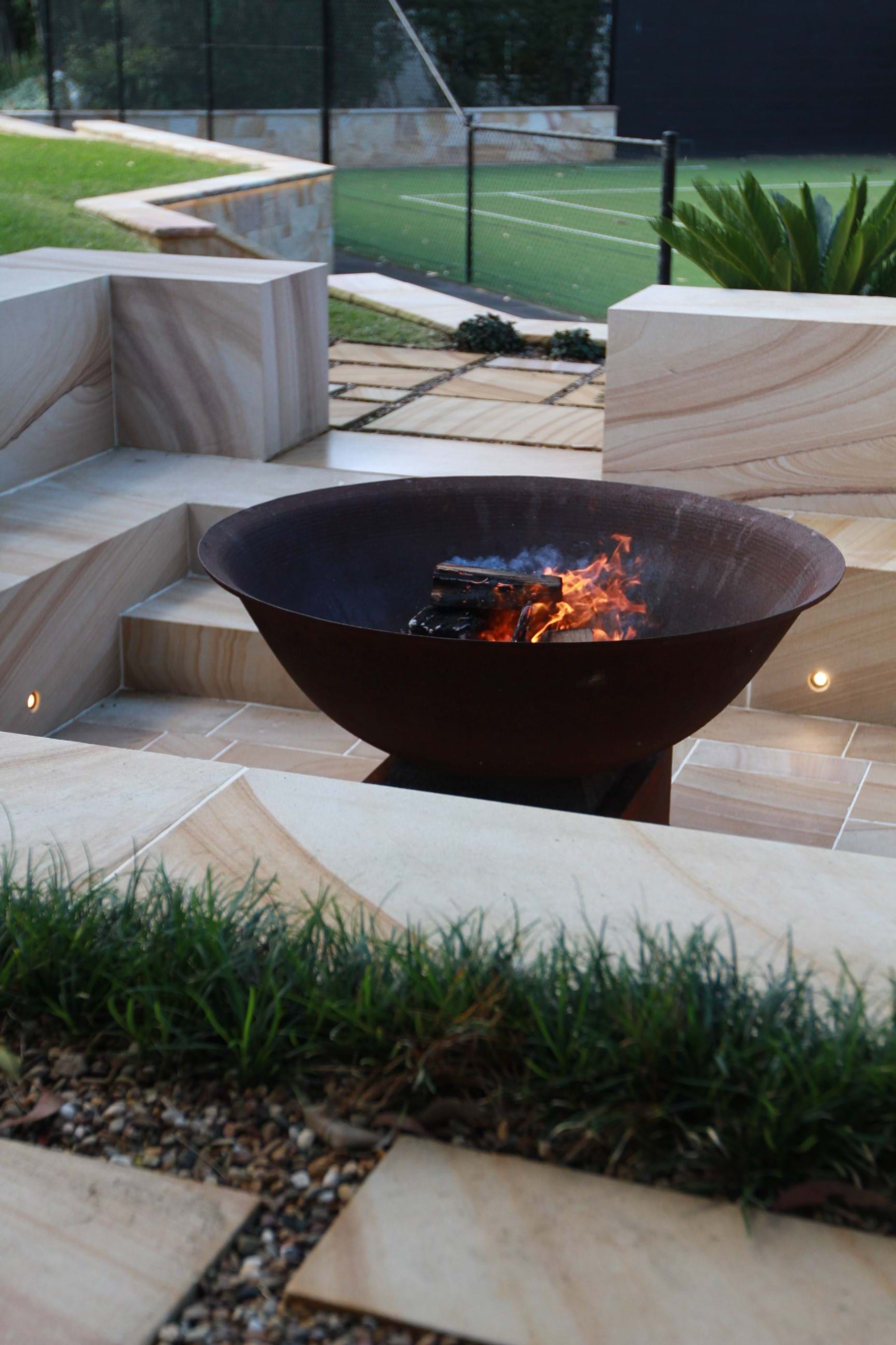 The sandstone and corten steel fire pit was a high end detail that added considerably to the established contemporary property and it's landscaping. Especially noting that this location within the property was an underused and under utilized corner of the yard.