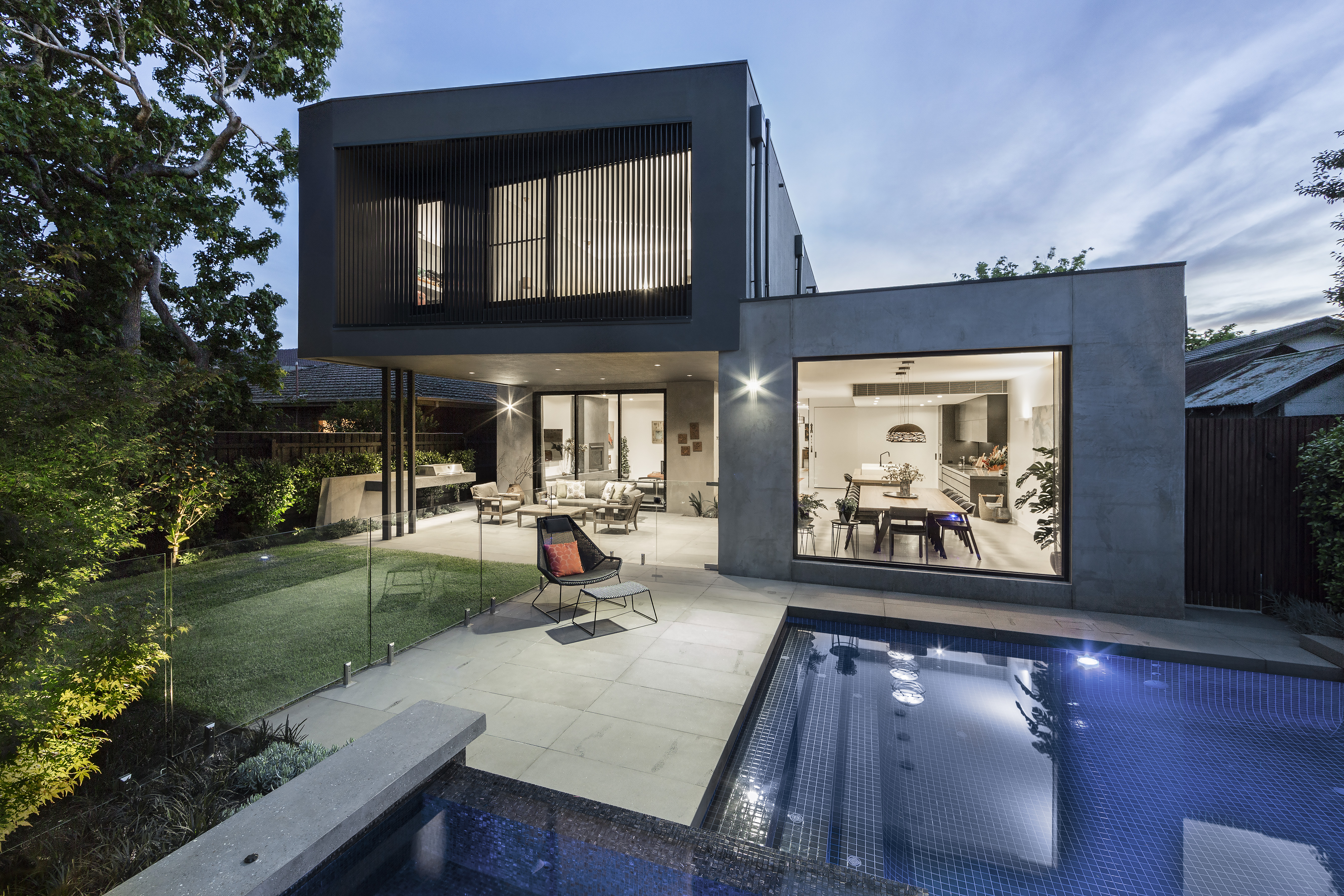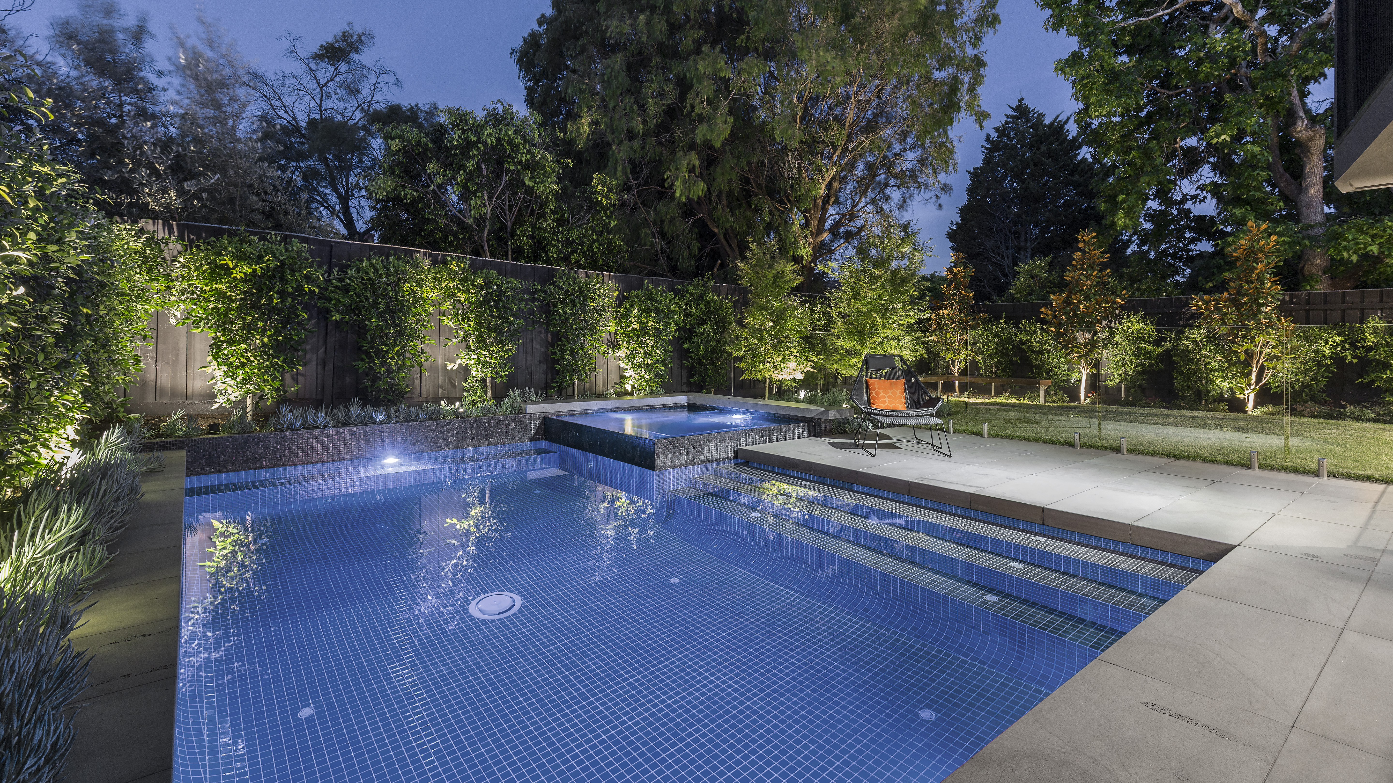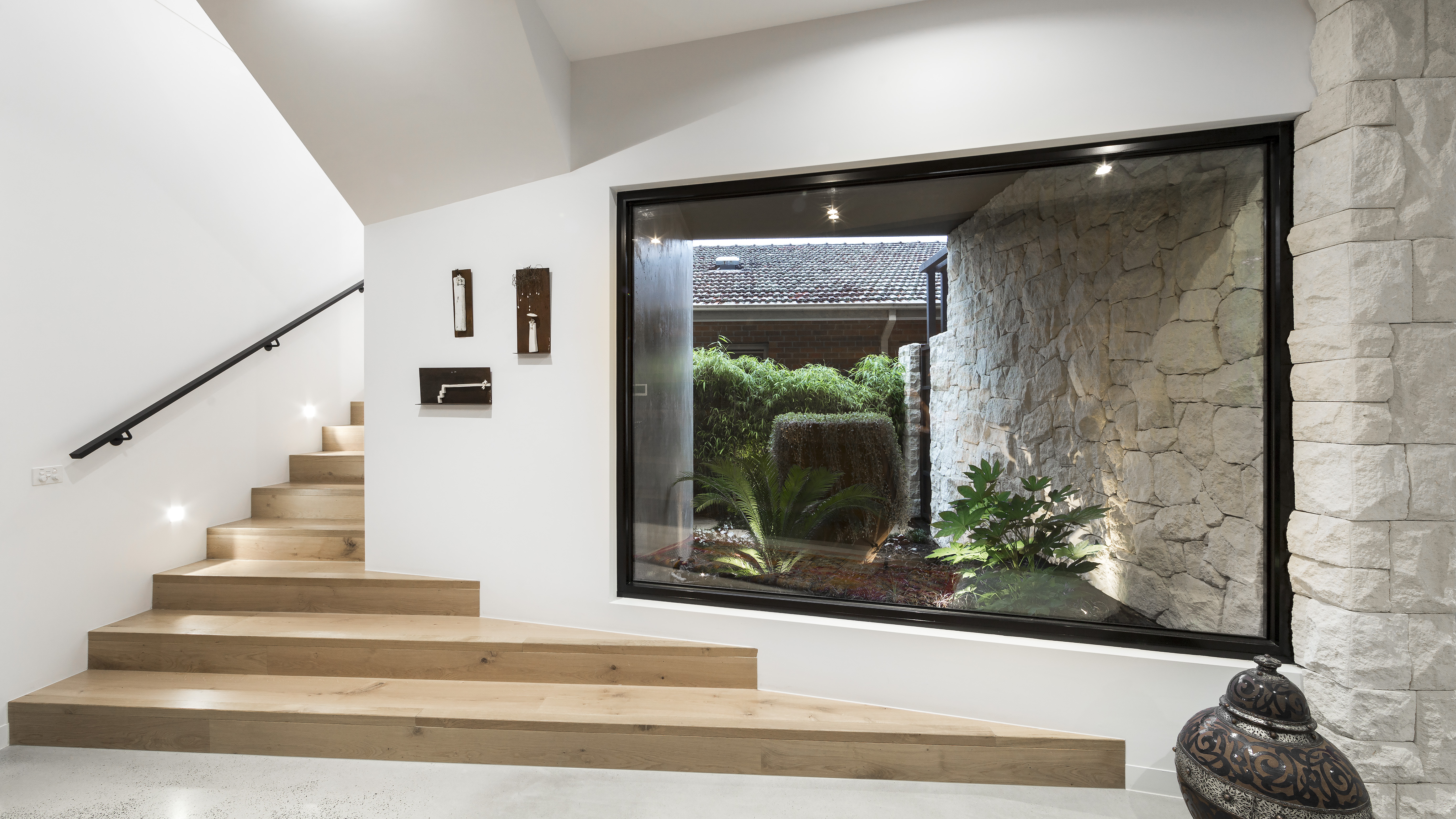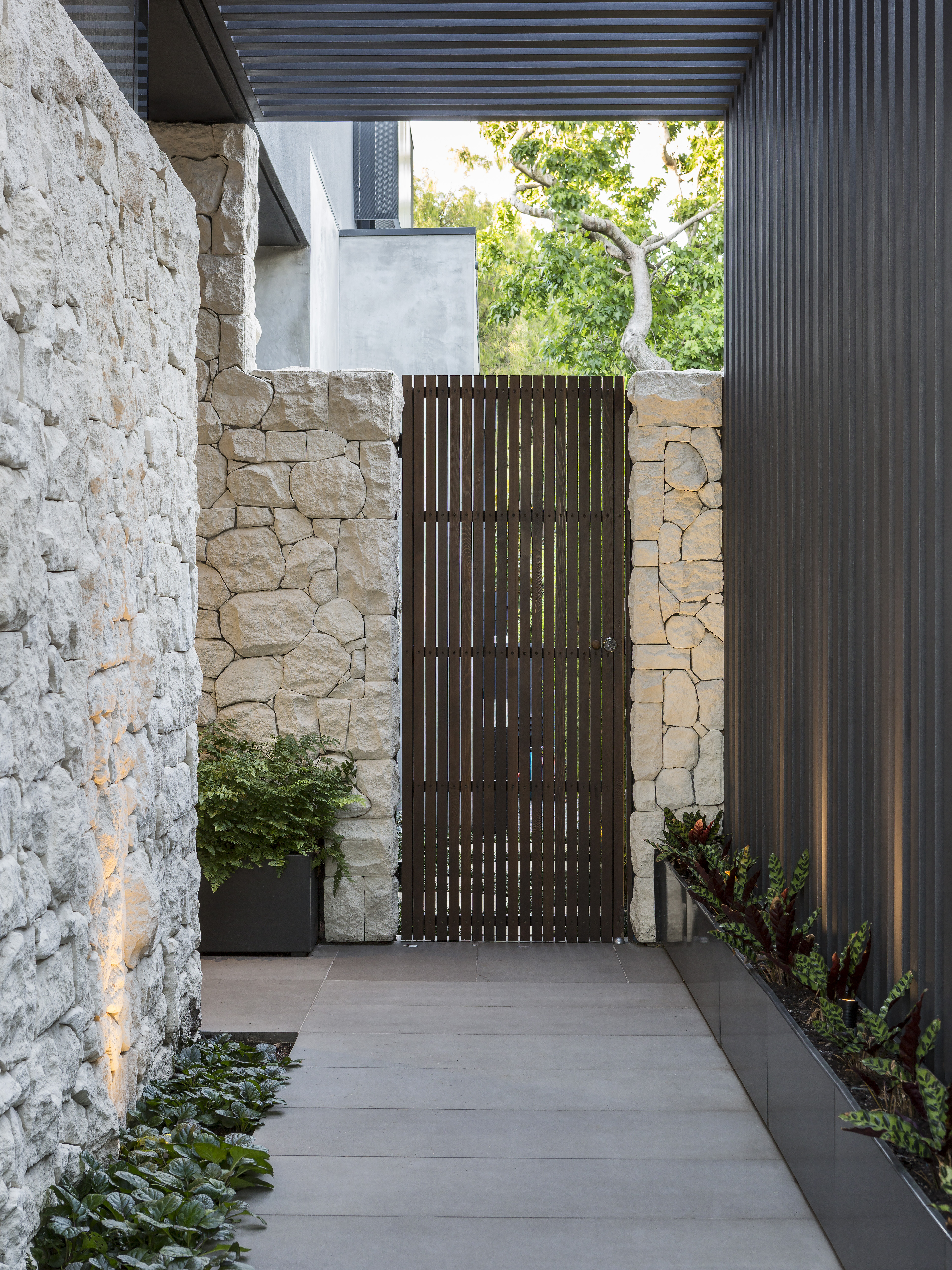 The brief was extensive; the clients wanted a pool and spa, a generous alfresco entertaining space, open lawn areas and an inviting entry, with clean lines, yet an organic feel to the space, and the two internal courtyard light wells had to be striking in every way.