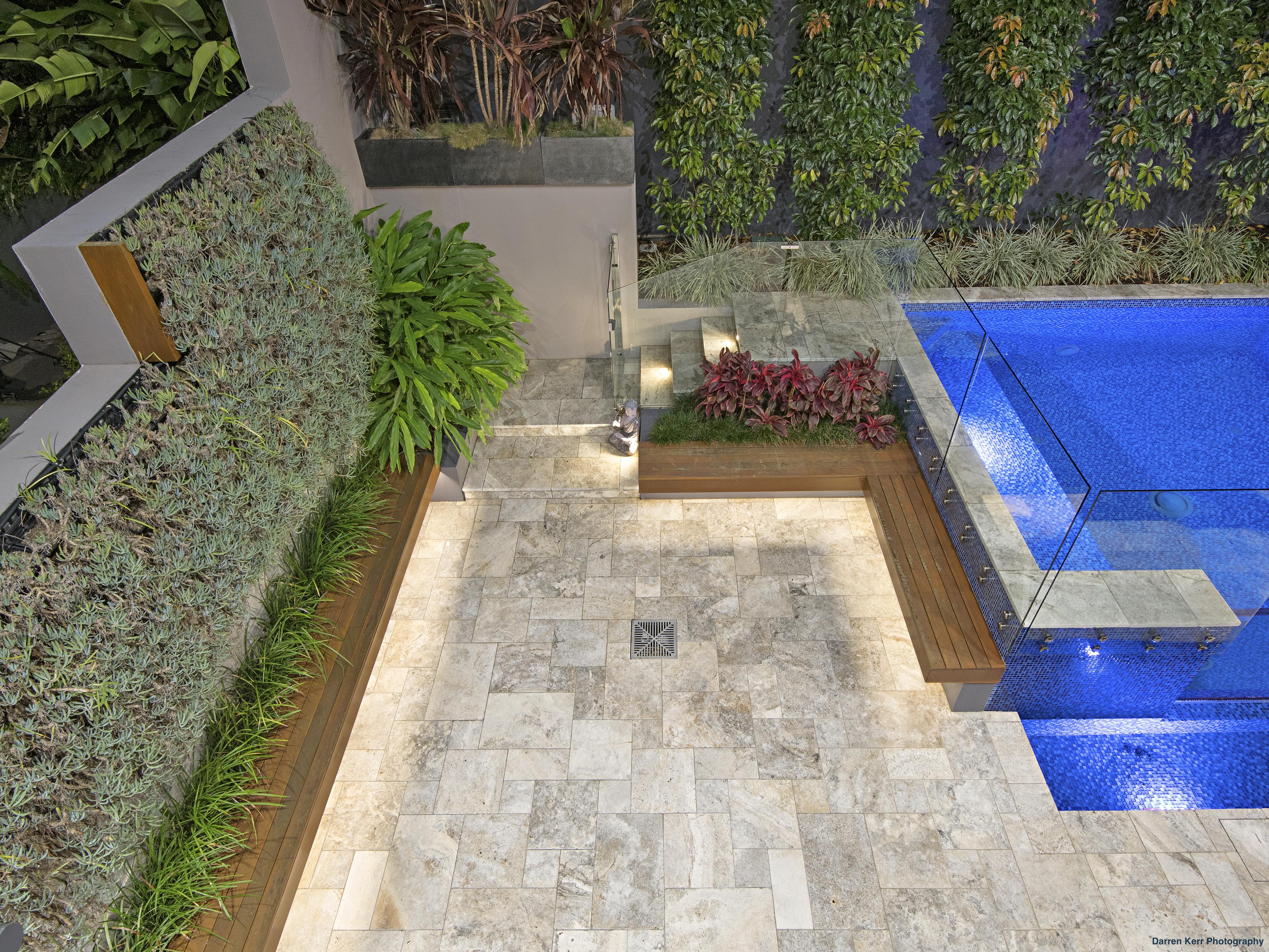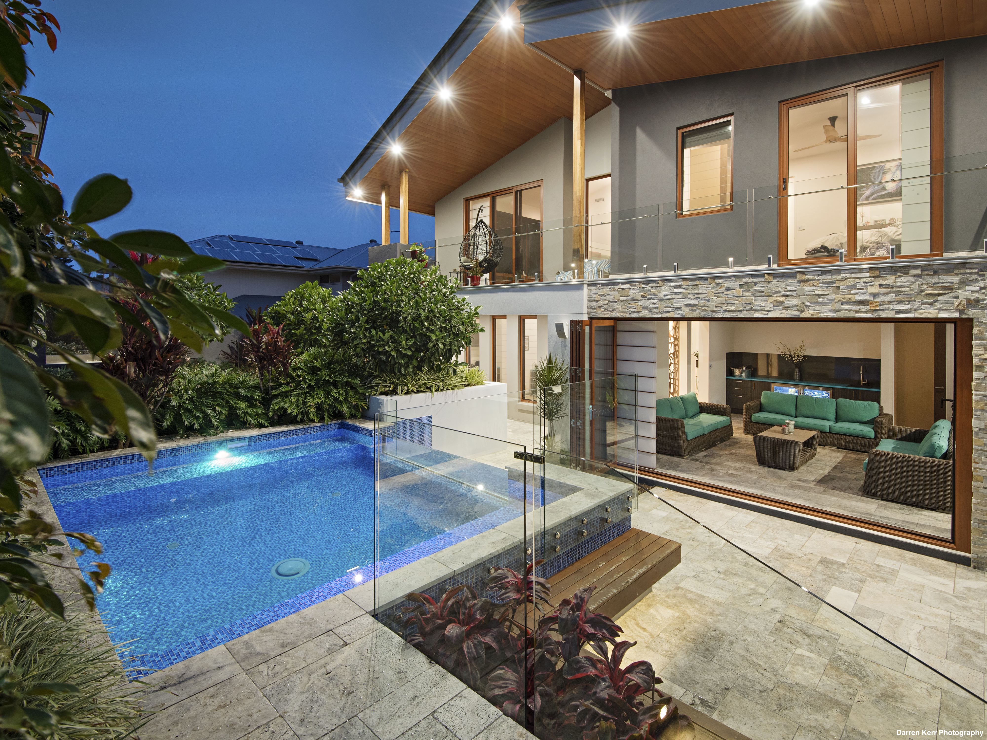 The designer was engaged by the client, a self employed couple with a teenage daughter to design the pool, landscape and external areas for a new home they were building in a new housing development. The house design and specifications had been largely completed by the time he became involved in the project.