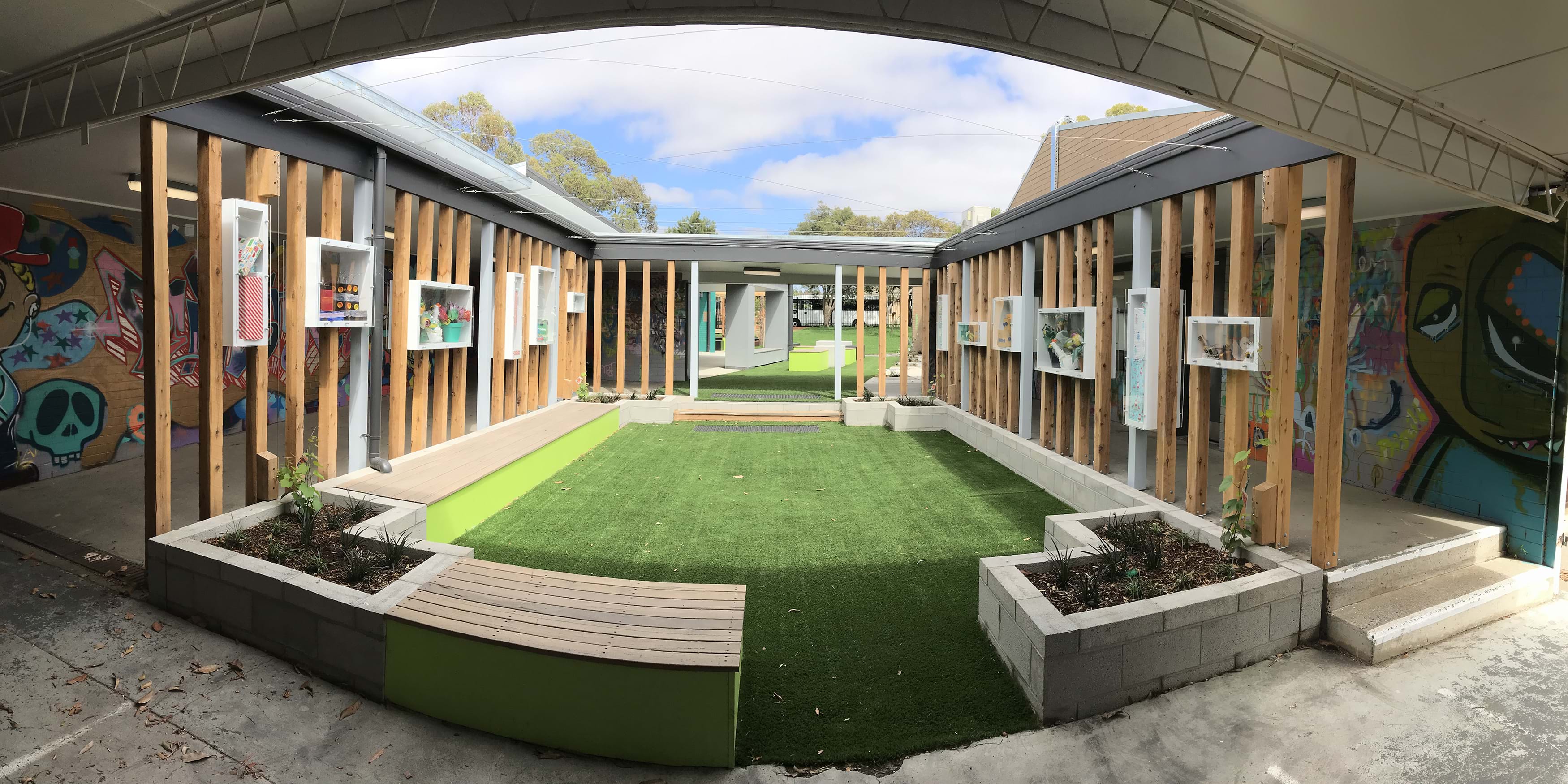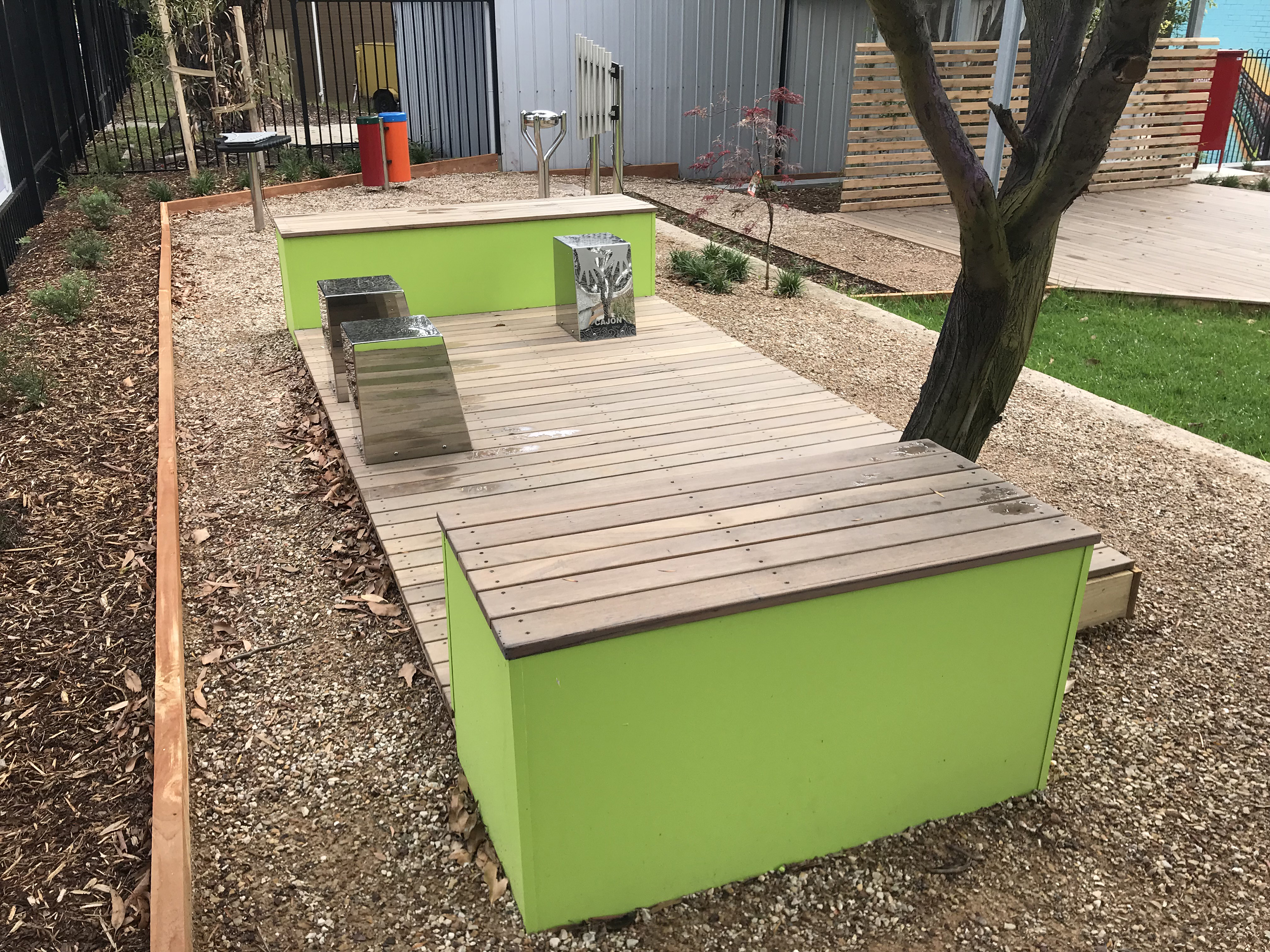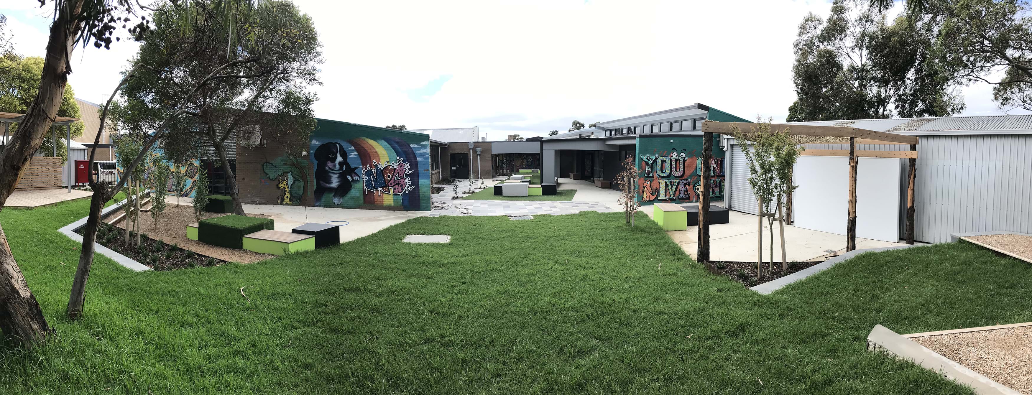 The brief was to create a retreat for relaxation, quiet gathering spaces for small / medium size groups to ‘chill’, to provide opportunity for outdoor classes to occur and a consideration for ‘time out’ moments where students might release frustrations before being invited back into classrooms.