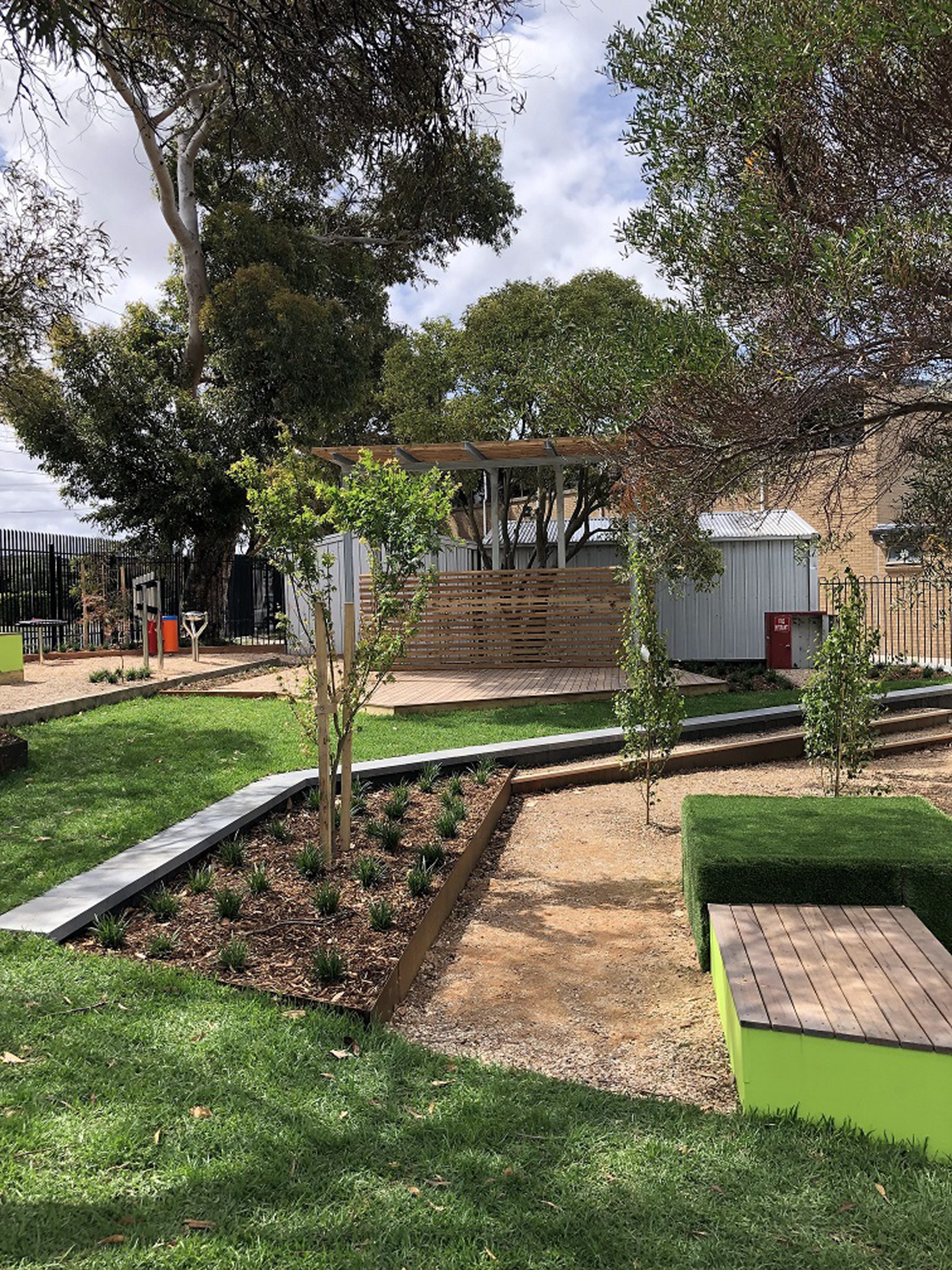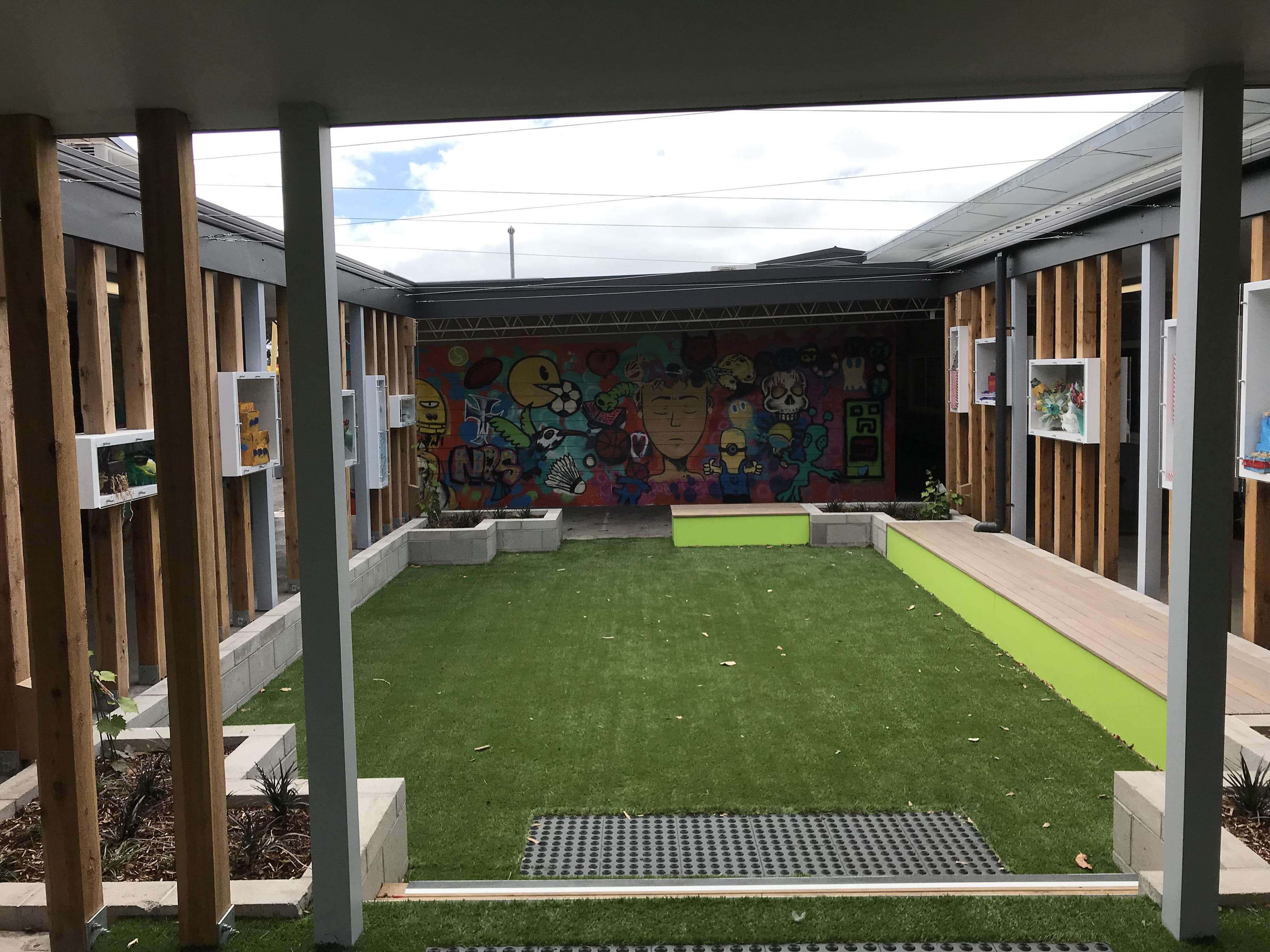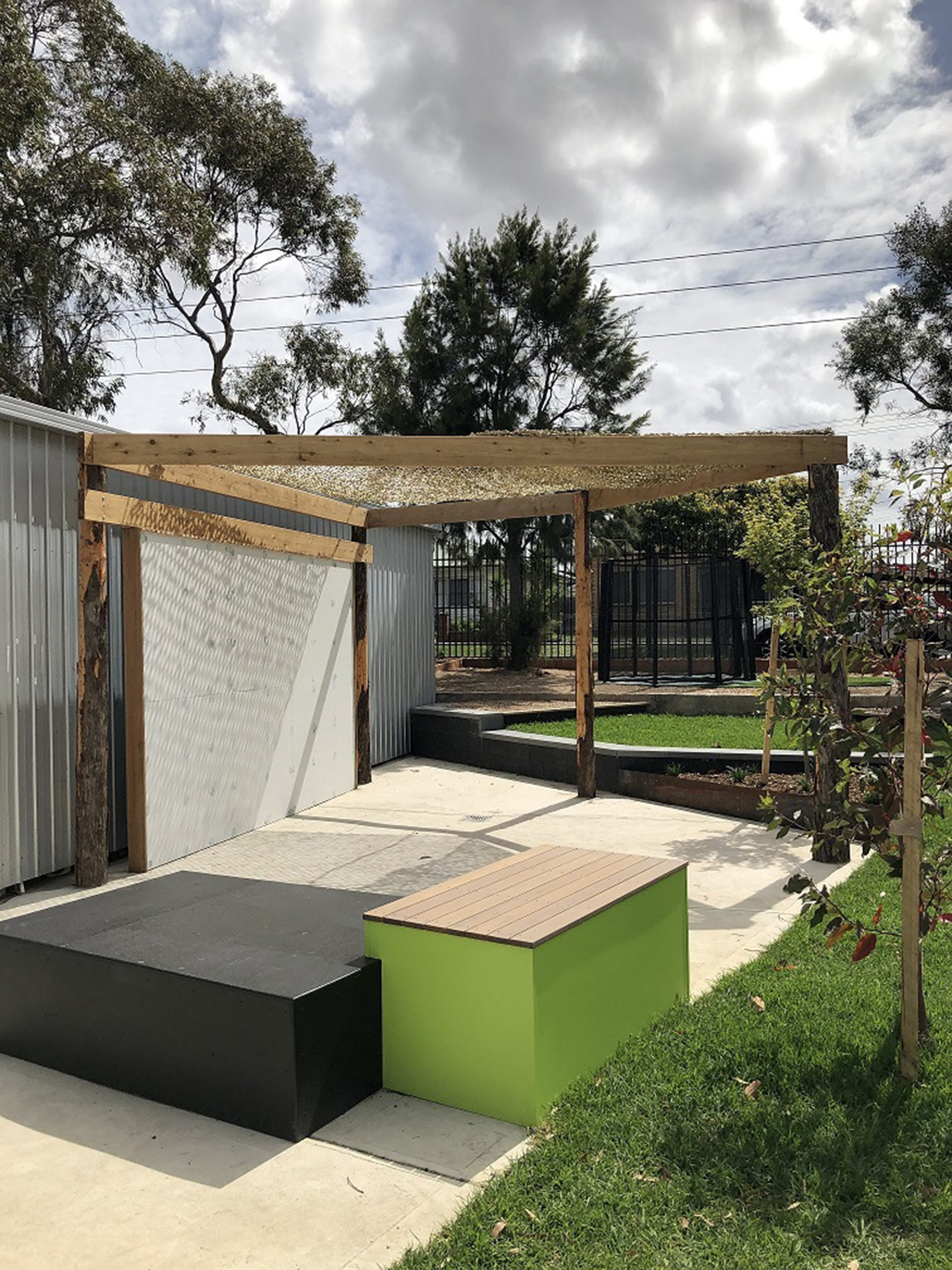 The brief was to create a retreat for relaxation, quiet gathering spaces for small / medium size groups to ‘chill’, to provide opportunity for outdoor classes to occur and a consideration for ‘time out’ moments where students might release frustrations before being invited back into classrooms.