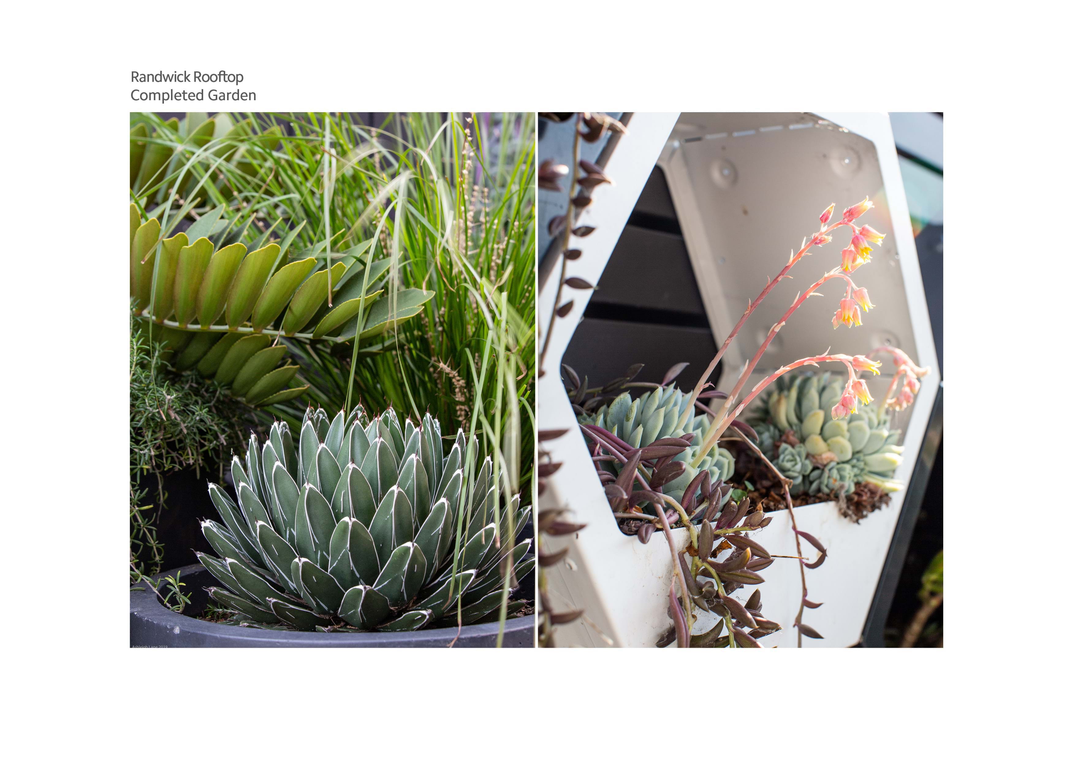 The planting needed to tolerate the rooftop conditions of heat and wind exposure. The planting sees a mix of strong succulent forms, colours and textures. Architectural plants such as Tree Aloe (Aloe Barberae) and other exotics and natives bring a range of softness and structure to the space.