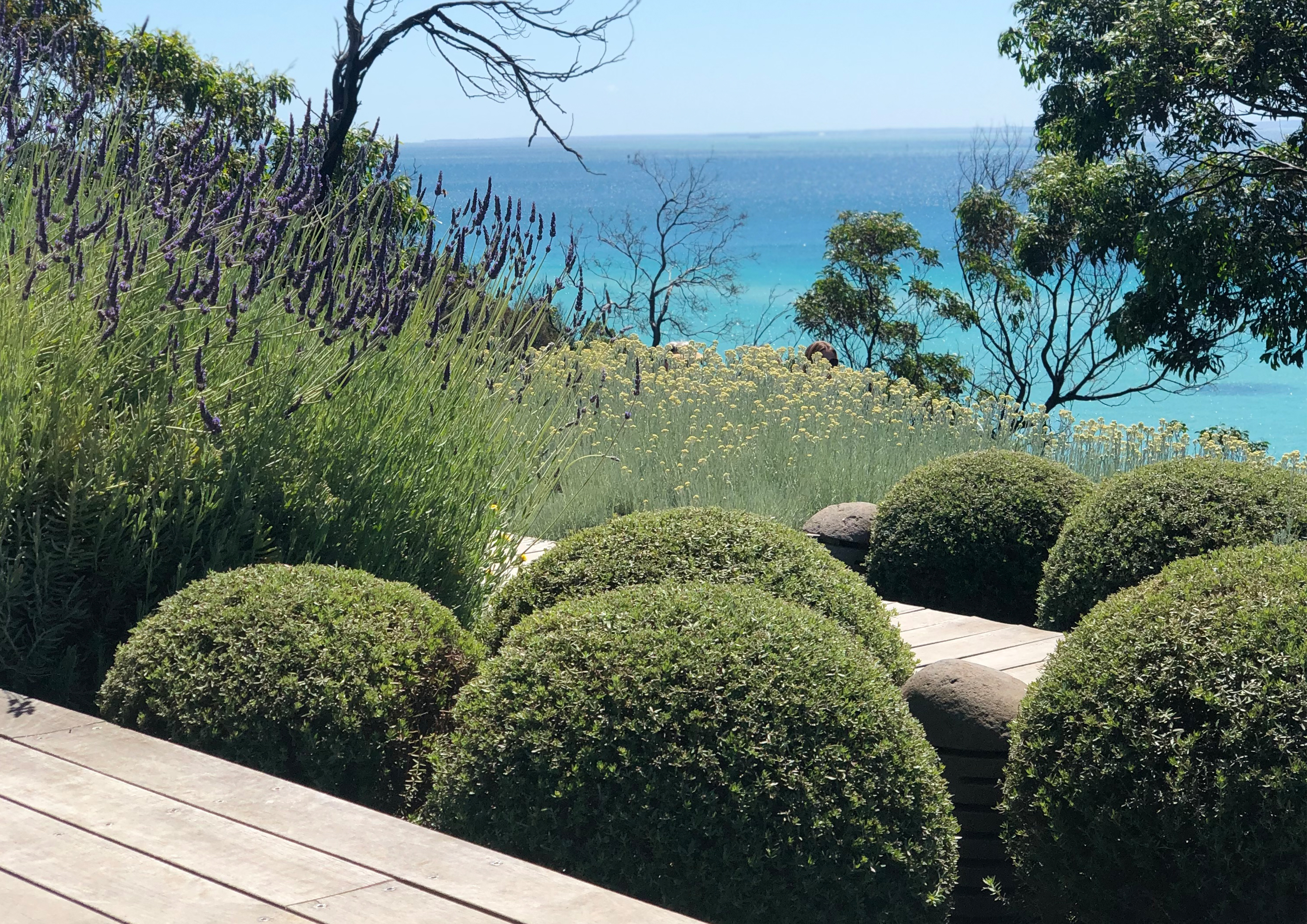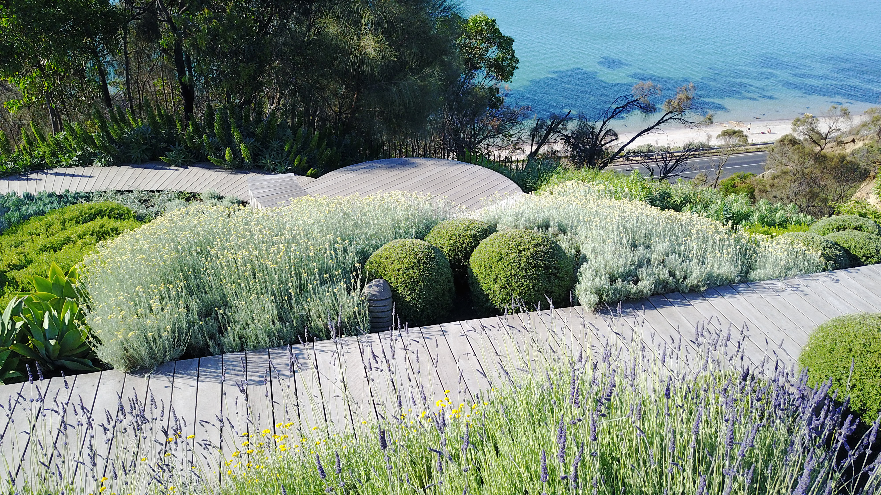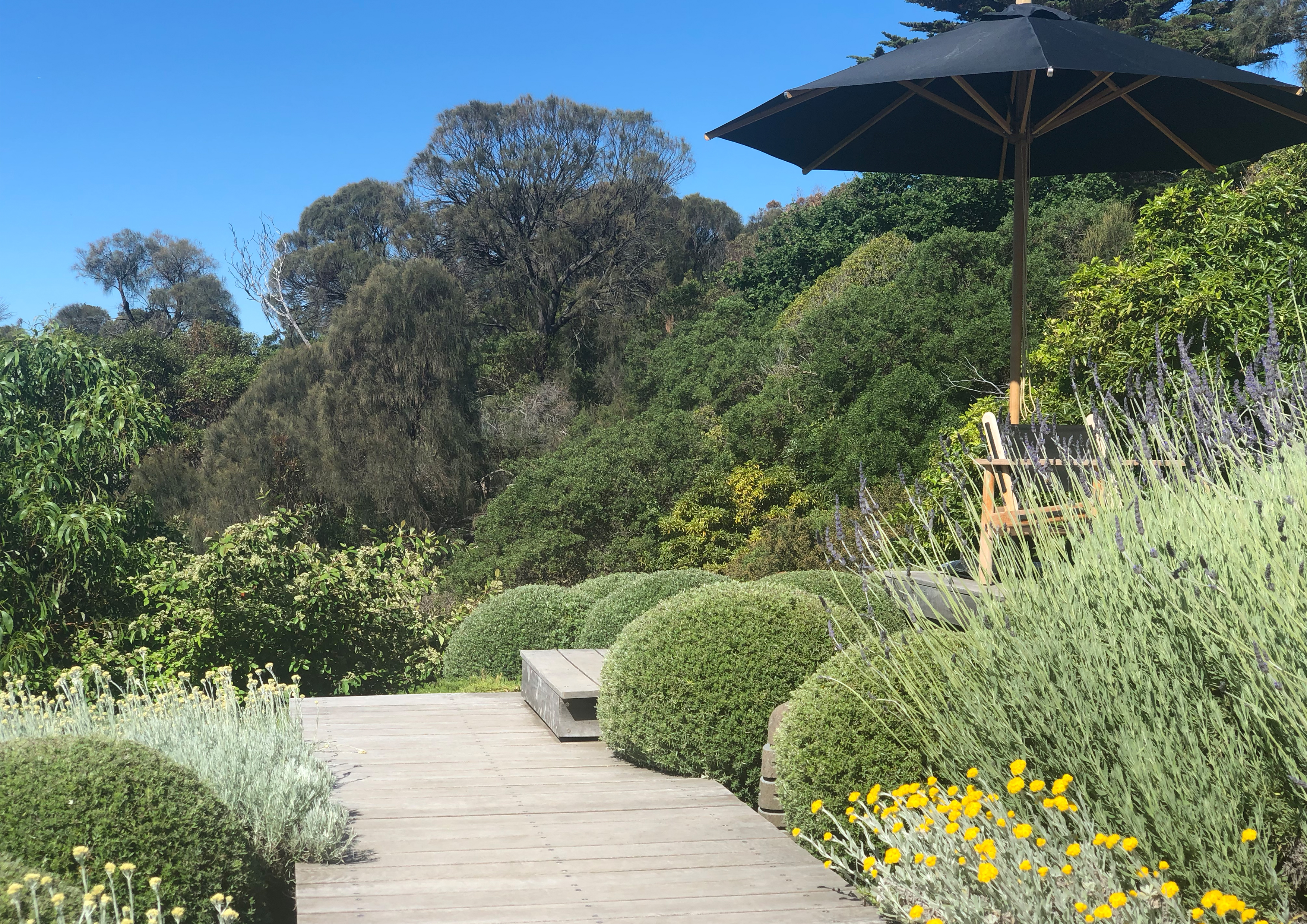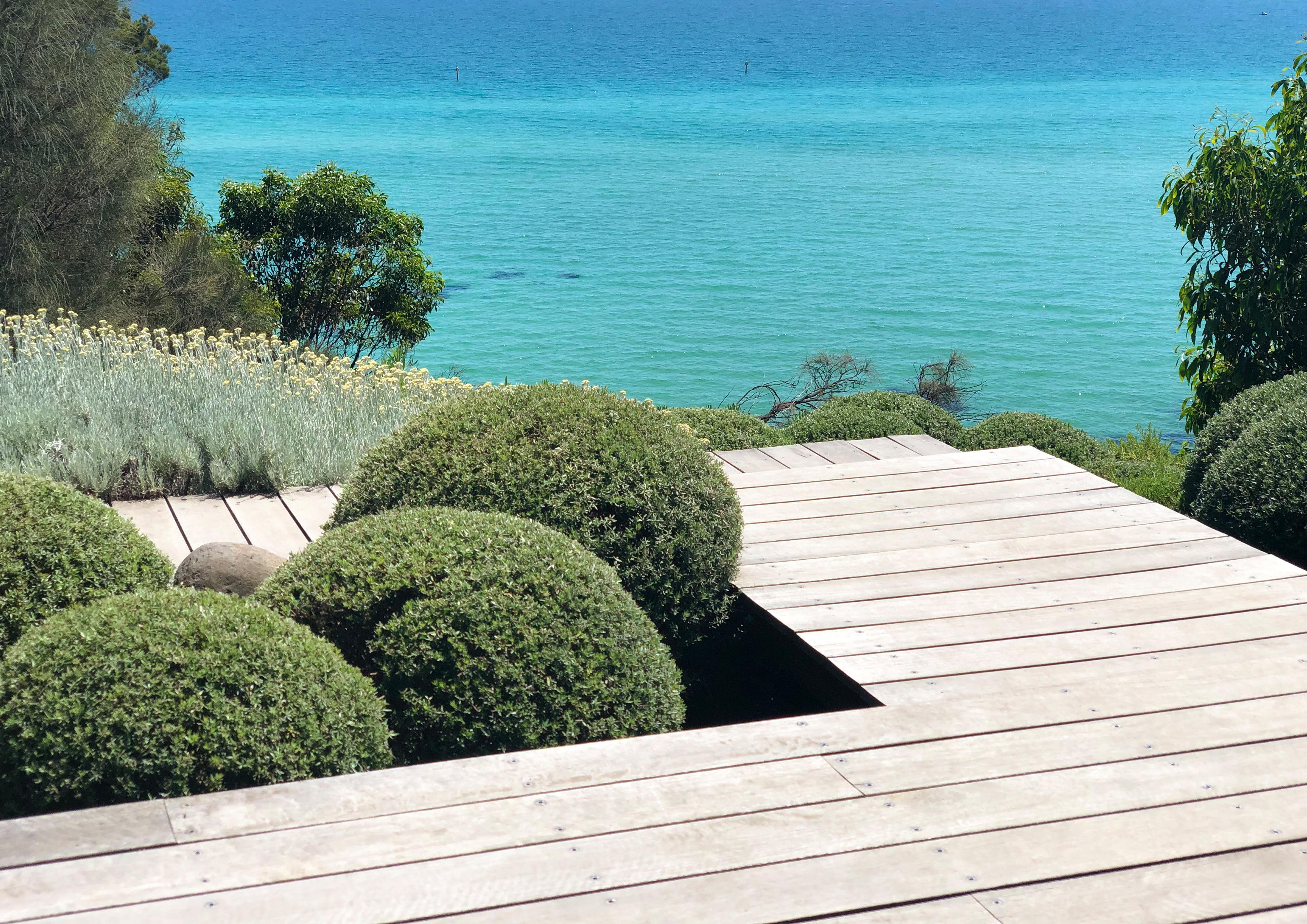 Uniquely positioned on the edge of a cliff overlooking Port Phillip Bay the client had a vision to transform an overgrown and weed infested site into a gardener’s playground, reminiscent of a luxury eco resort.