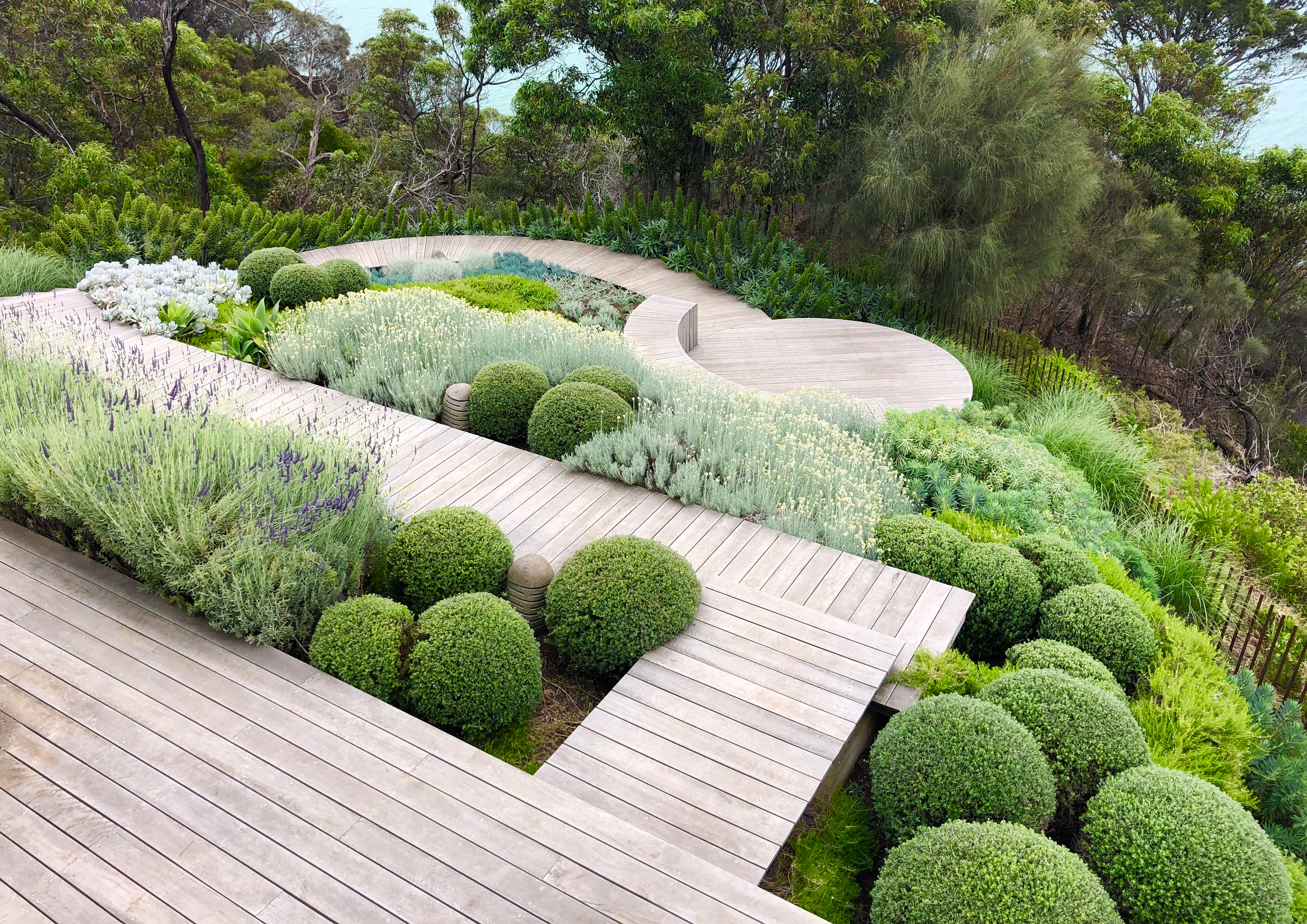 The design was to allow movement throughout an otherwise unusable landslip site and celebrate the beautiful ocean views, framing them with a broad selection of coastal species.