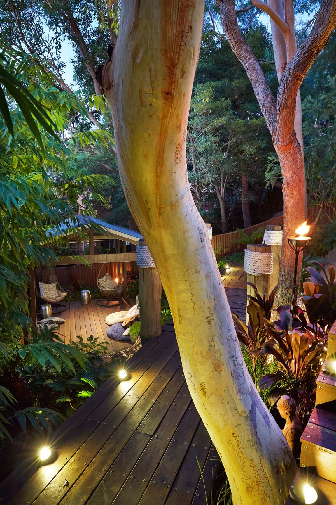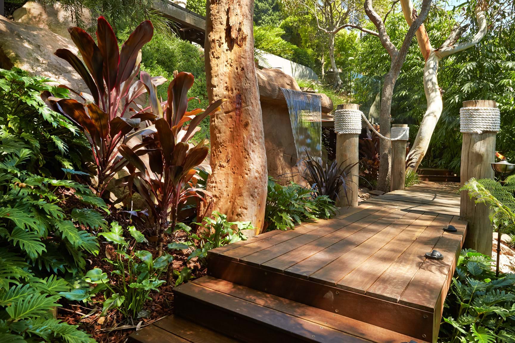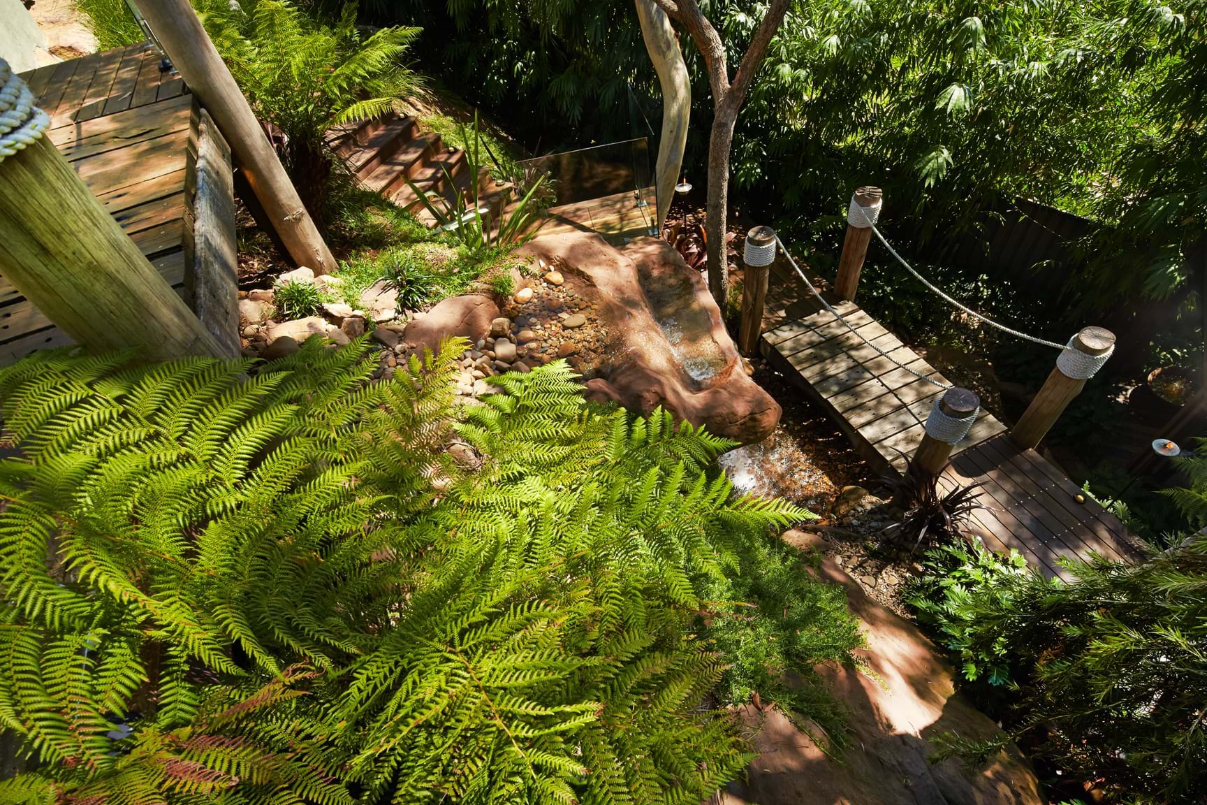 Creating a safe way of getting into this sloped parcel was important. A platform was installed