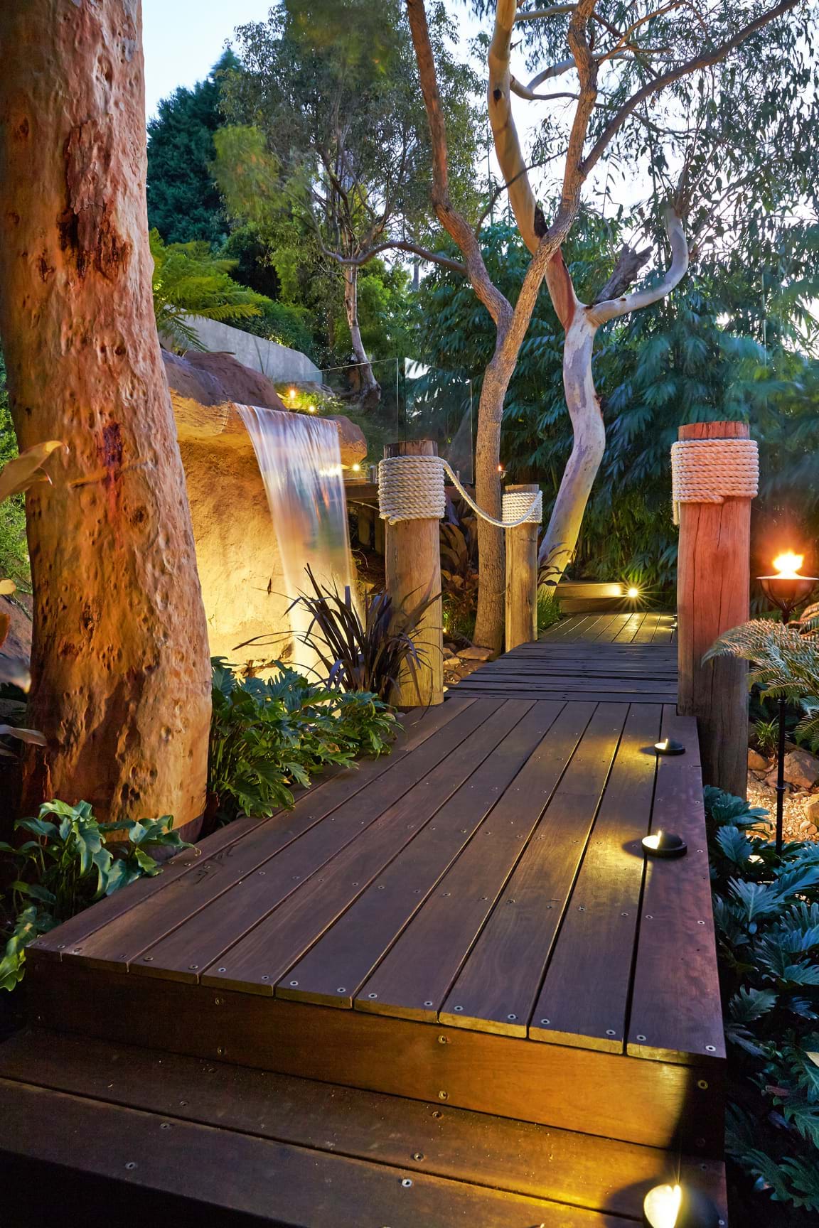 From this platform a board walk,bridge arrangement flowed still controlled by the land. A water course was woven in and around the garden’s natural structures. The elevated boardwalk weaves through the garden in the longest path lines possible giving true sensuousness to the land.