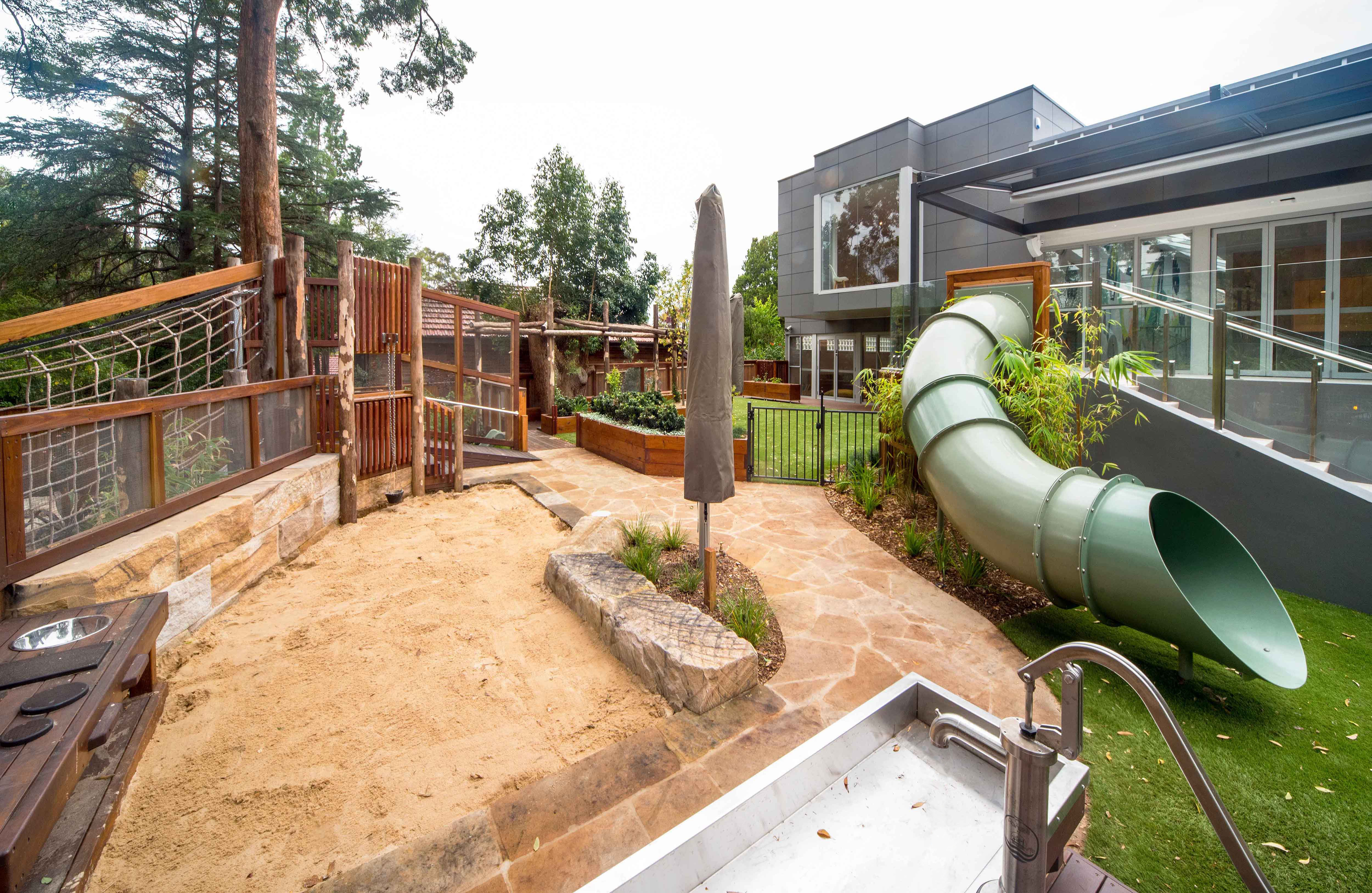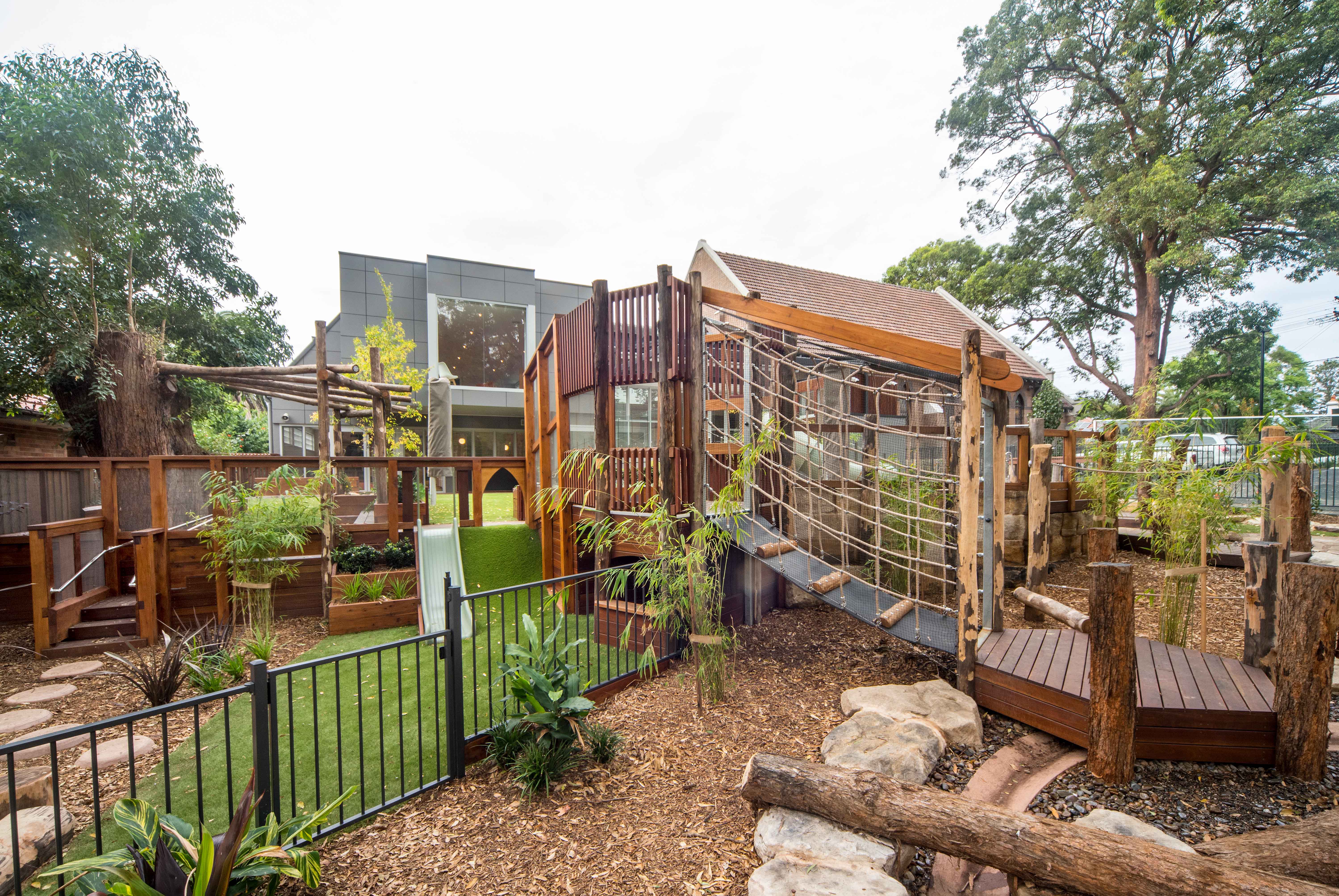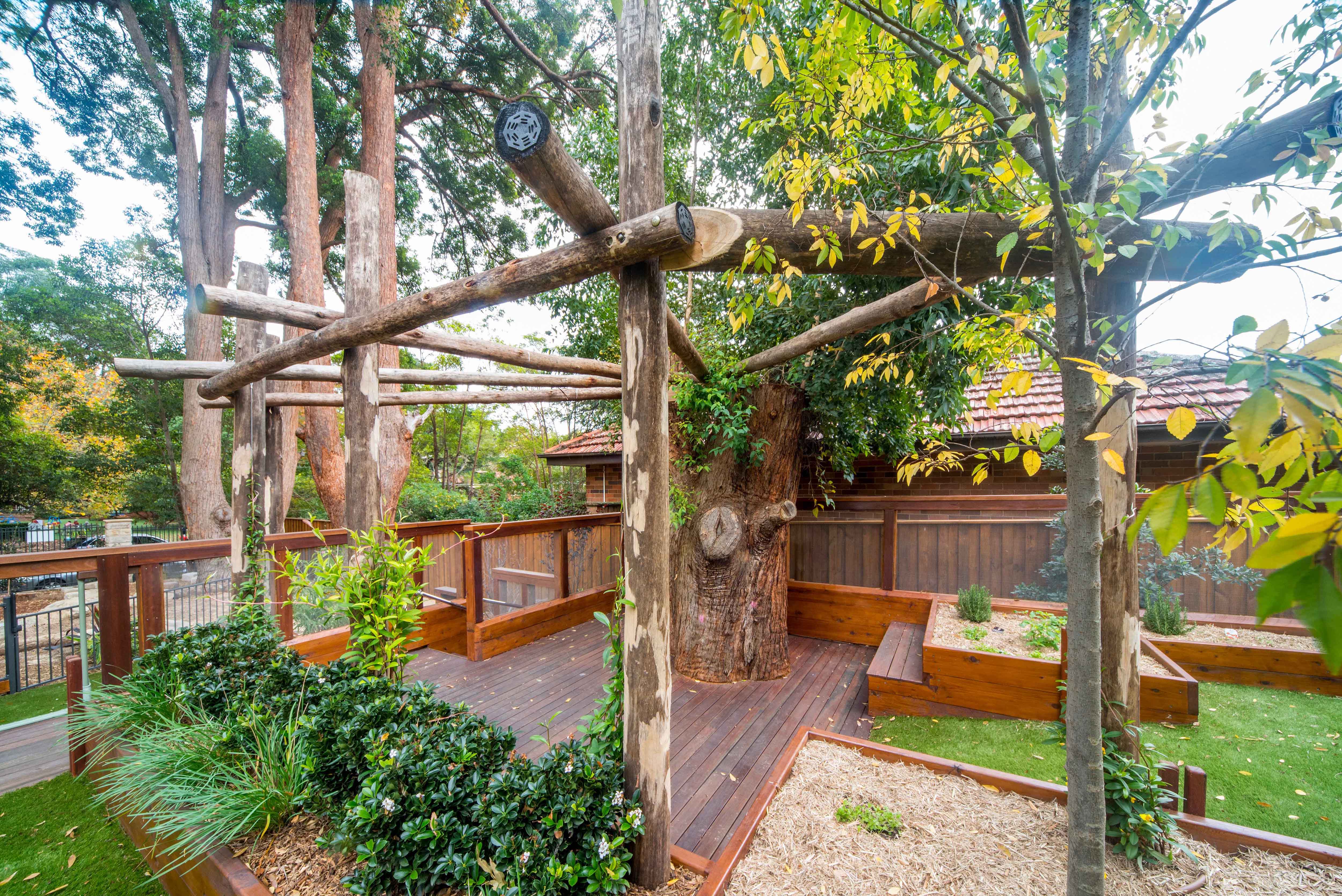 The brief was to design a high-quality natural playground for a new sixty place Early Learning Centre at Cheltenham. The site was an unused heritage listed church that had been purchased for renovation and conversion, including the provision of the new playground environment.
