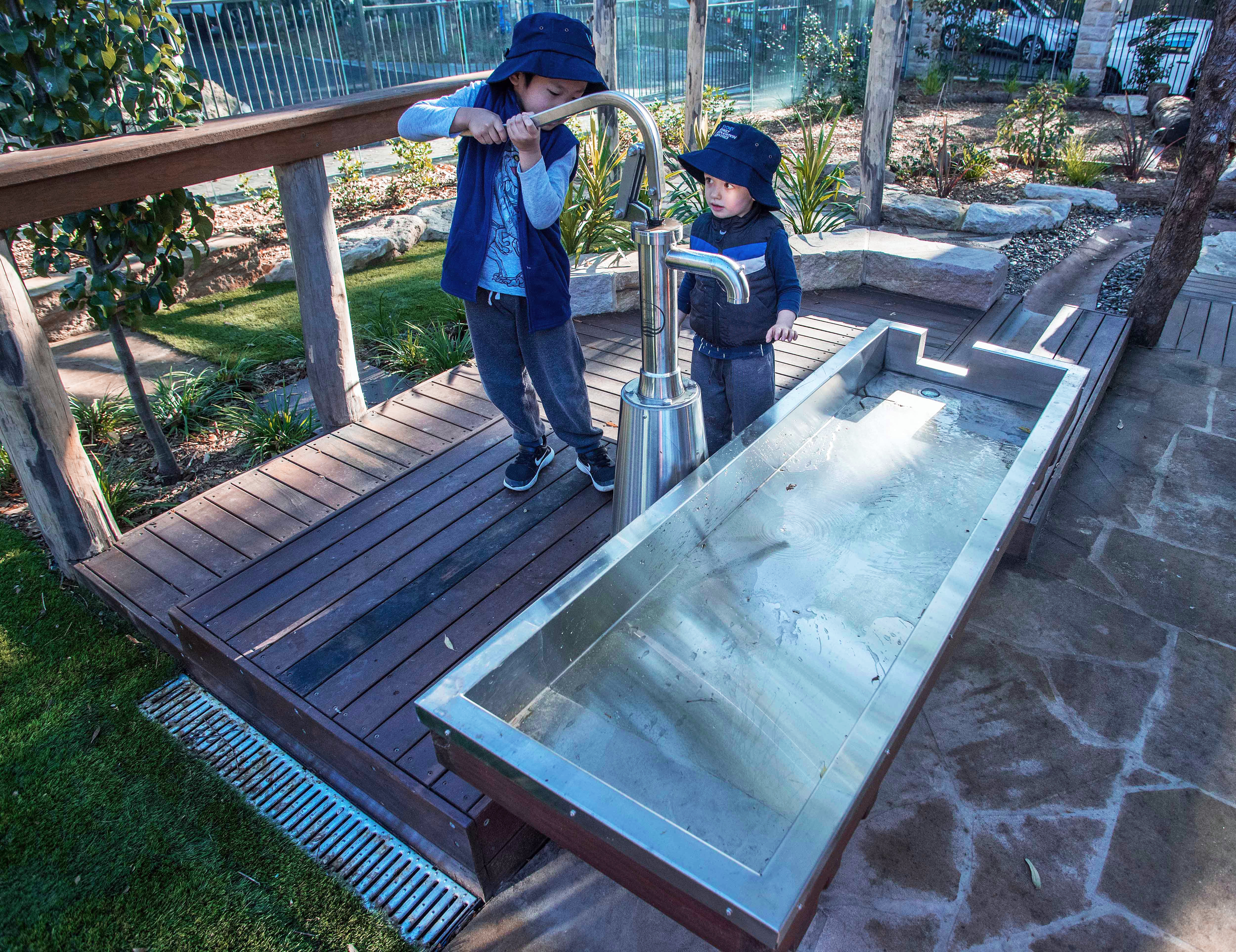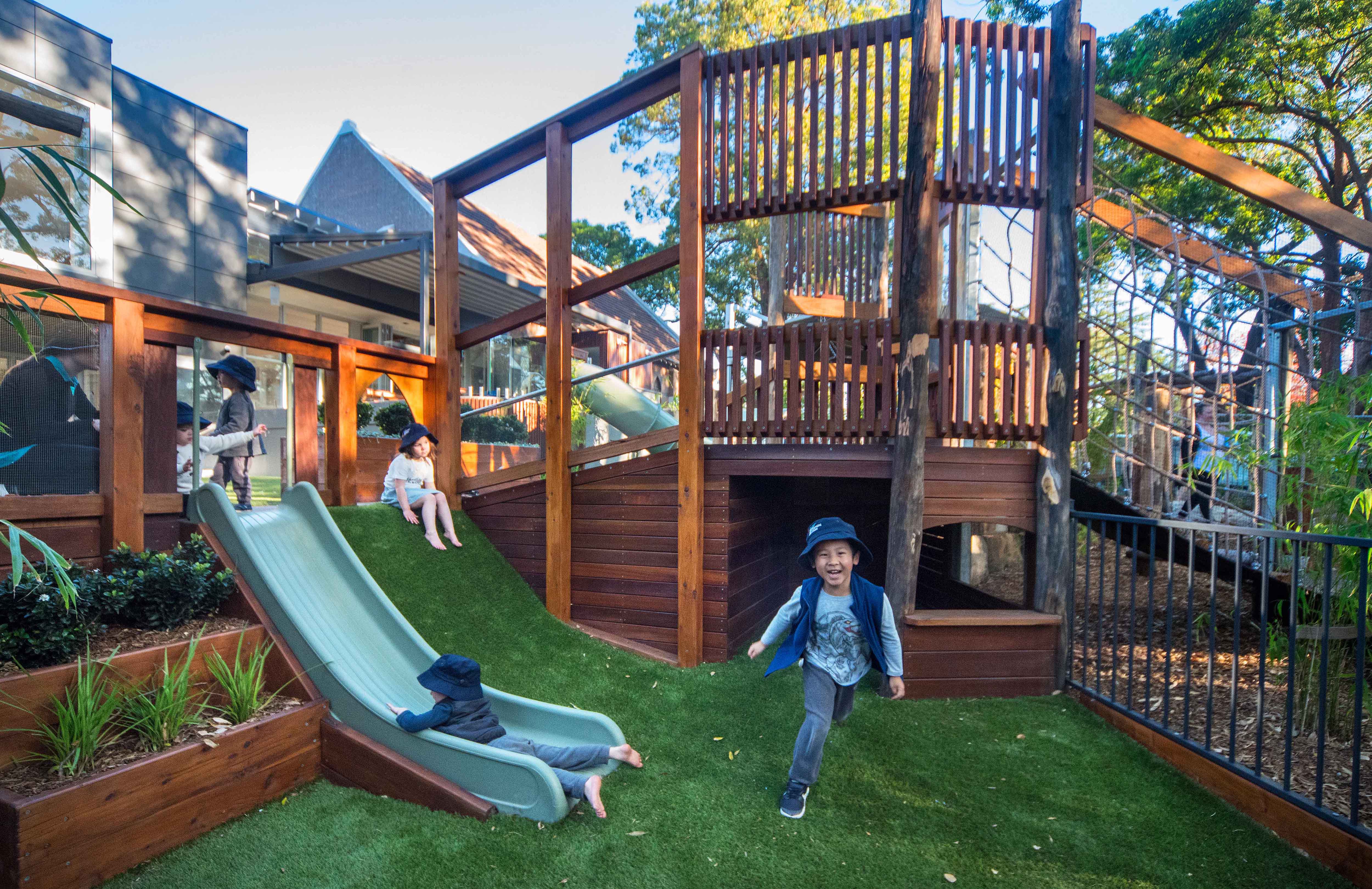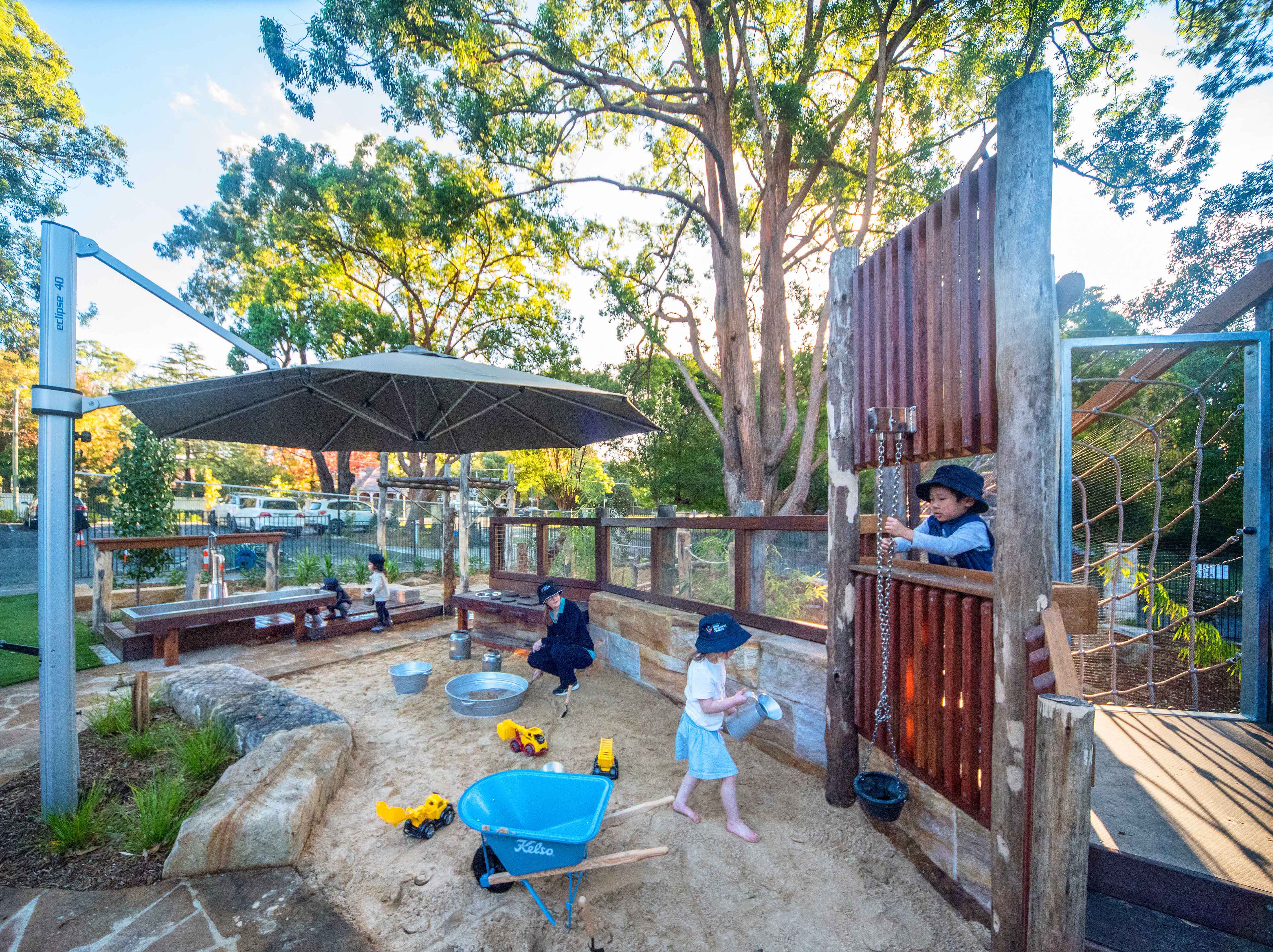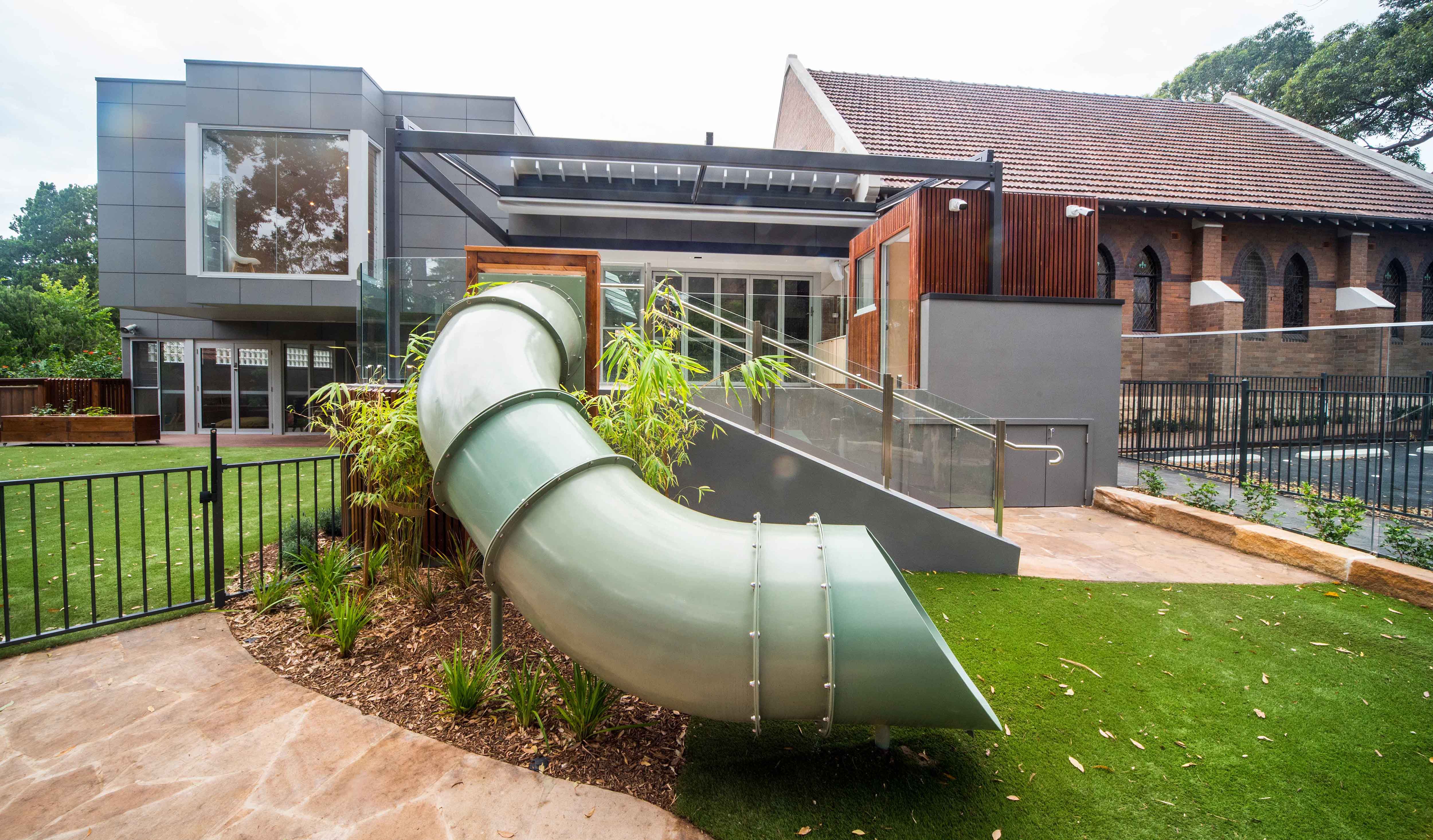 The brief was to design a high-quality natural playground for a new sixty place Early Learning Centre at Cheltenham. The site was an unused heritage listed church that had been purchased for renovation and conversion, including the provision of the new playground environment.