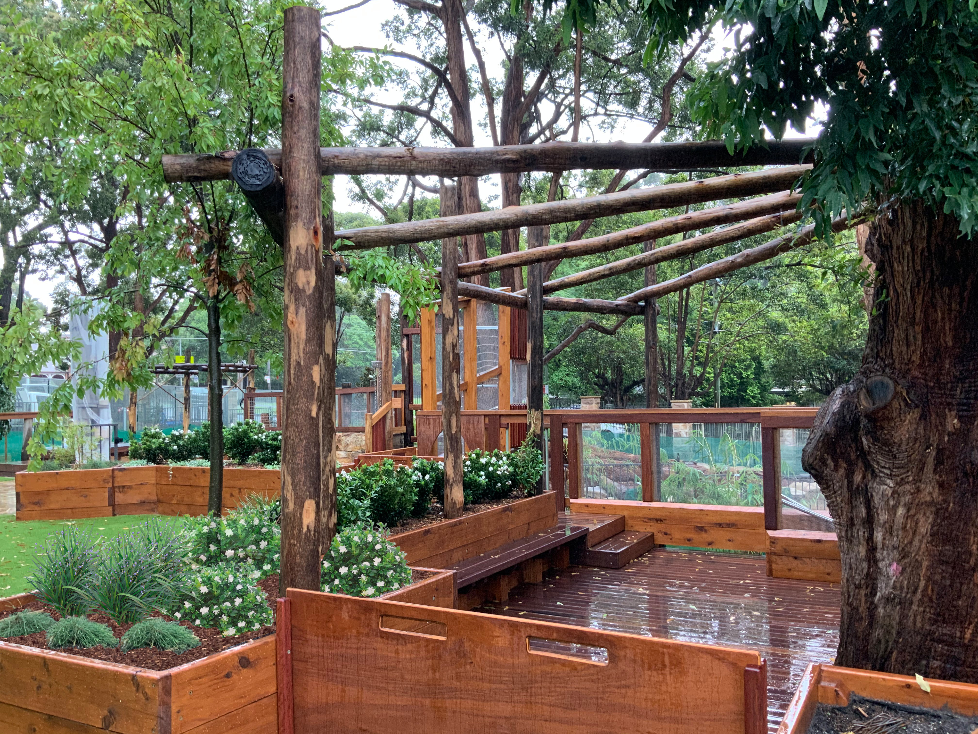 The project is aesthetically pleasing as well as providing a creative outdoor space for staff and children to enjoy. The use of onsite reclaimed timber, various textured surfaces and a simple yet effective plant palette adds to the integrity of the churchyard playground.