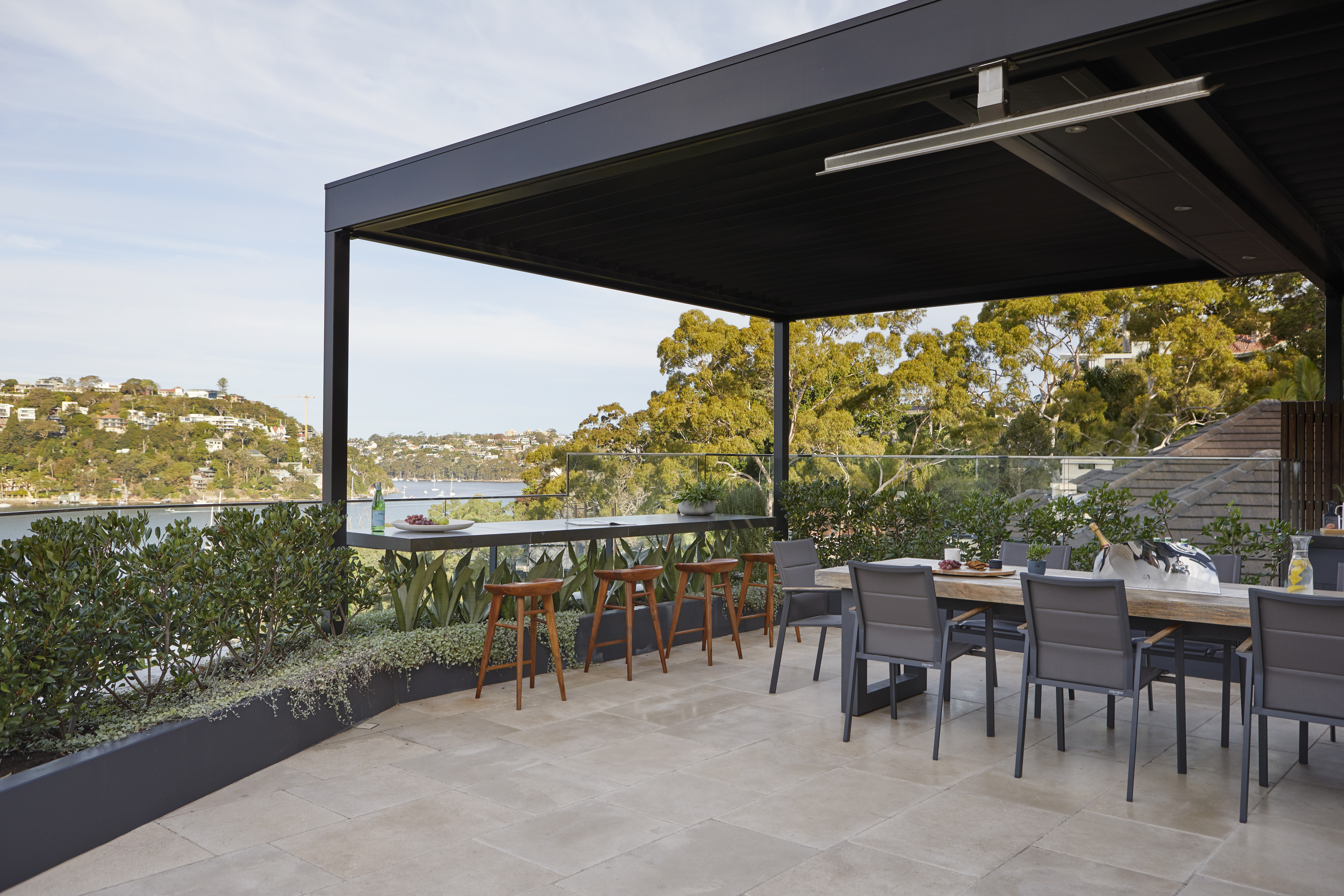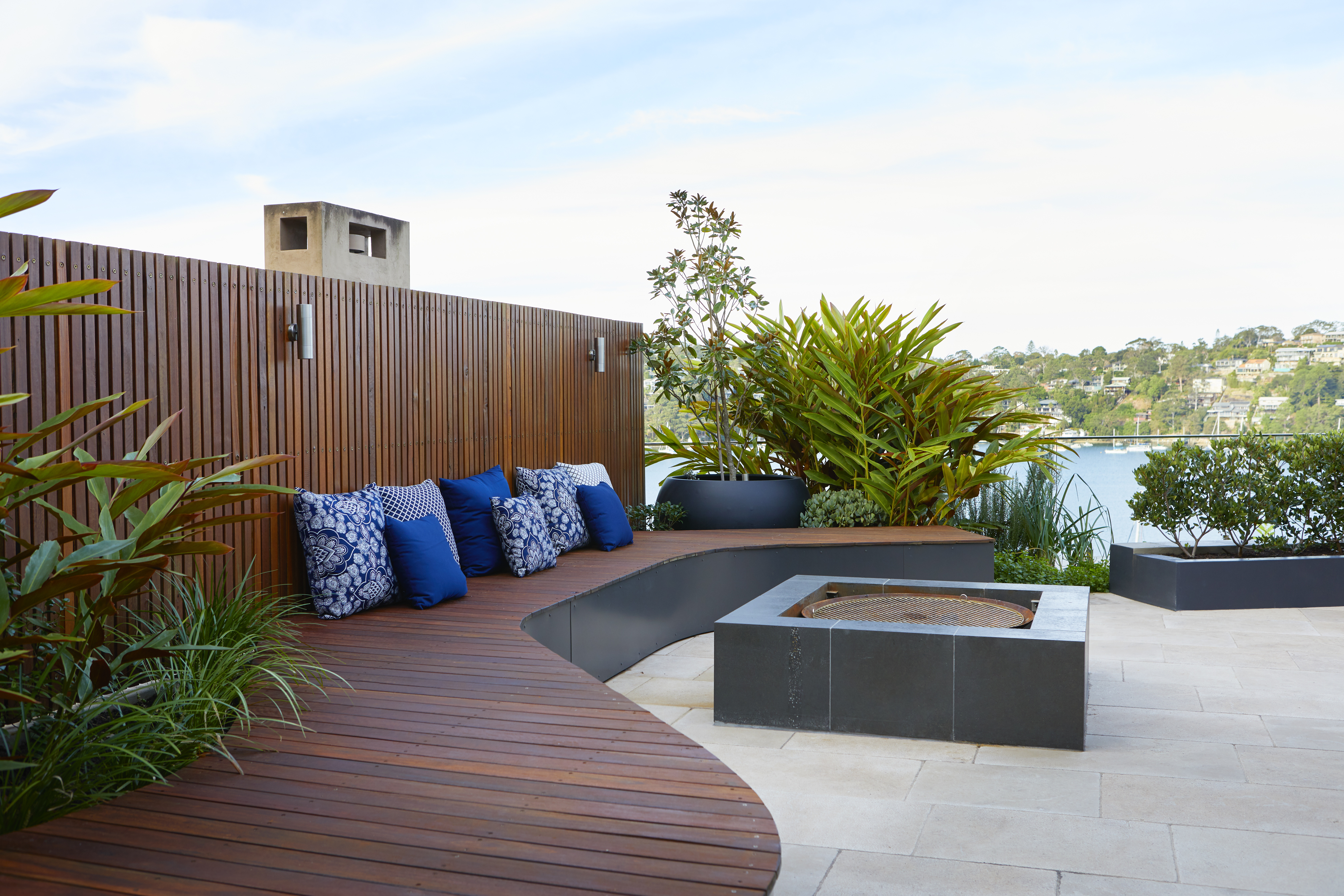 The design brief for this project was to create an area for the whole family to entertain both large groups of friends and more intermit nights around a fire. The designer was asked to create a space that could facilitate people flow while entertaining, to create busy conversation areas and lounging pause spaces. The space was to include a large dining setting, builtin bbq area and lounge seating with a fire pit. He was asked to come up solutions to make this rooftop space useable all year round.