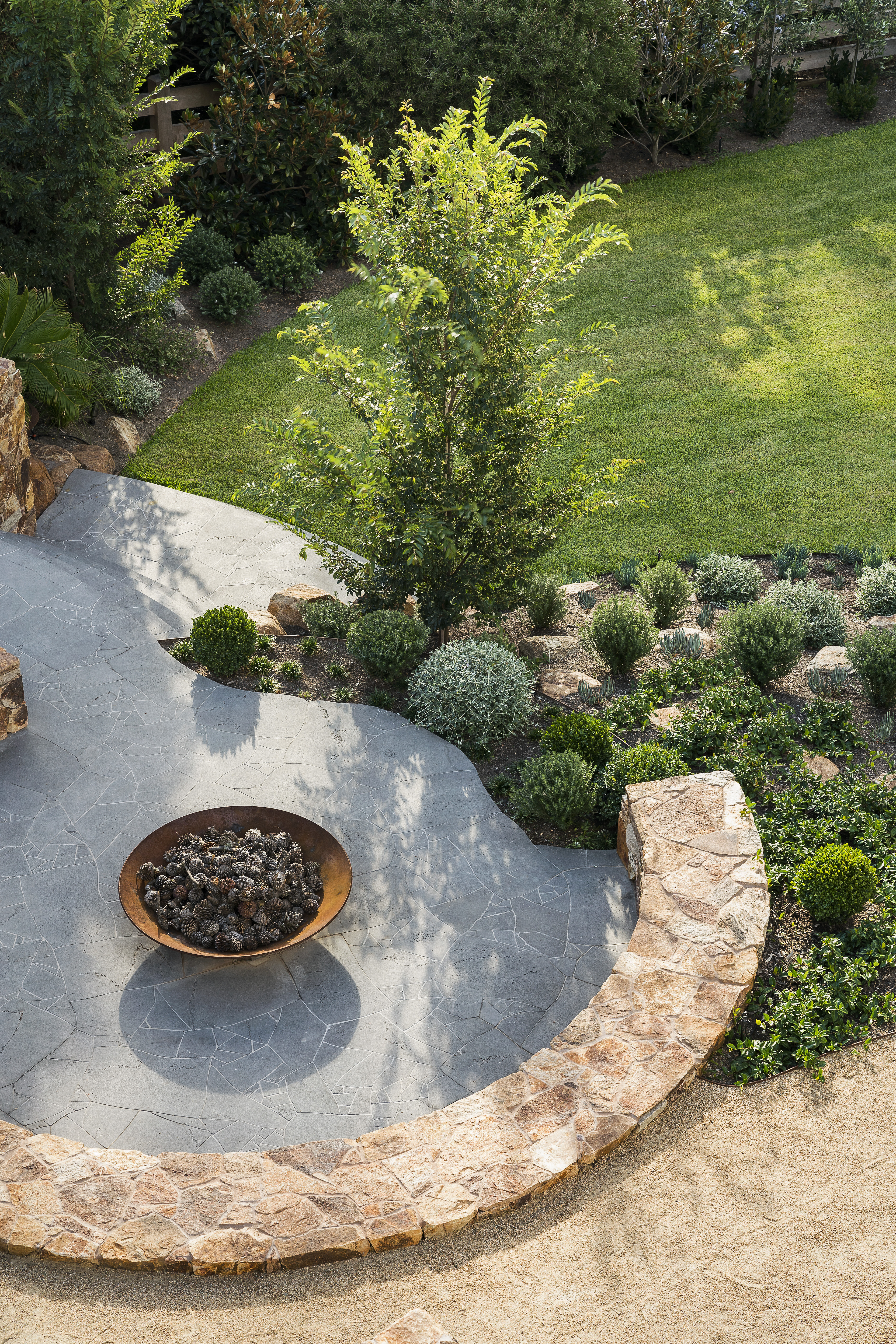 The brief specs included a large family-sized pool and spa with a wet edge that captured the view, a reworking of the rear deck to make it more liveable, level terraces to make the rear yard more user friendly, a basketball area, fire pit, built in trampolene, level lawn areas, and an eclectic, textural plant palette, natural coastal textures and materials, an outdoor shower, intimacy and privacy. A relaxed coastal, yet sophisticated feel throughout.