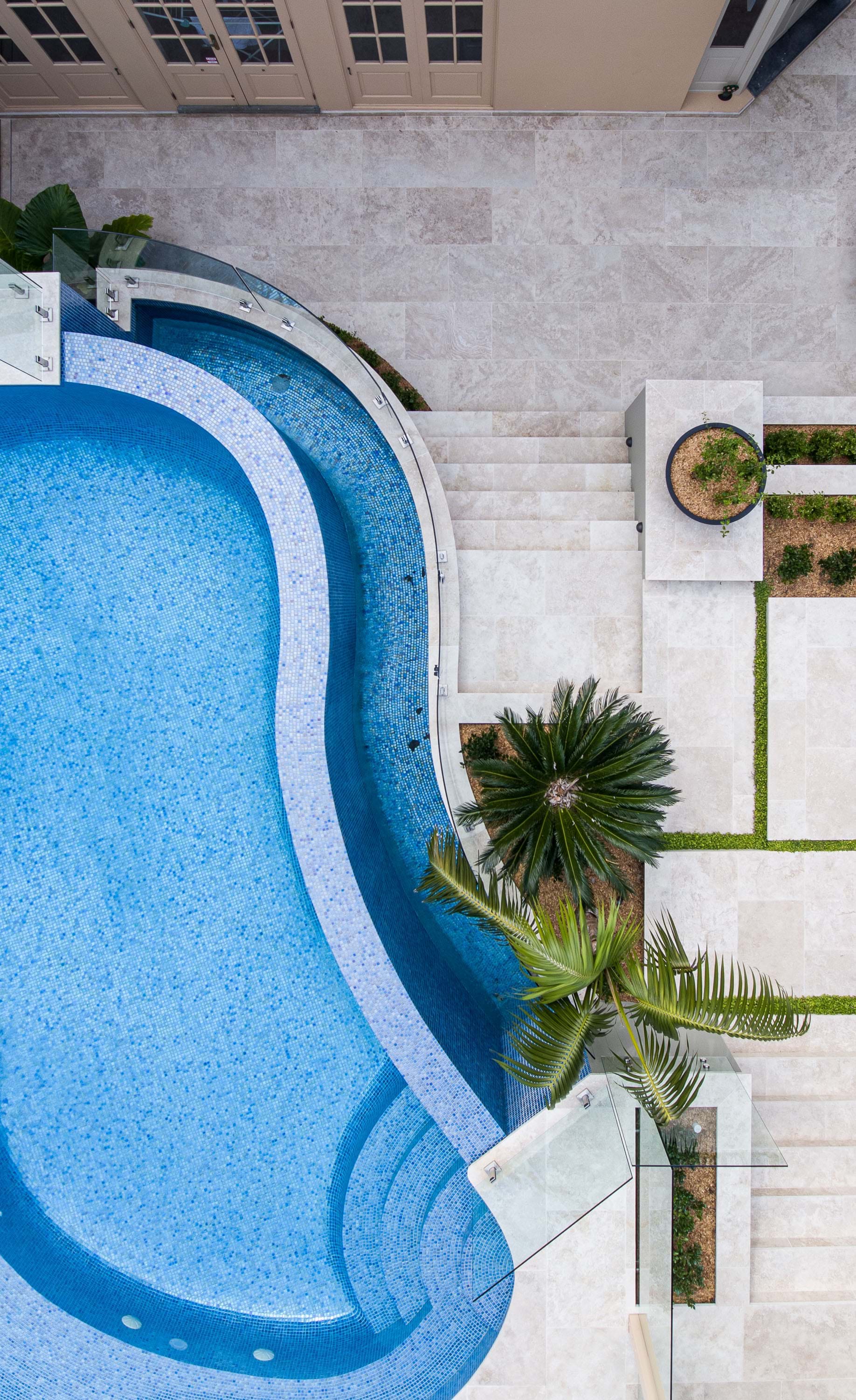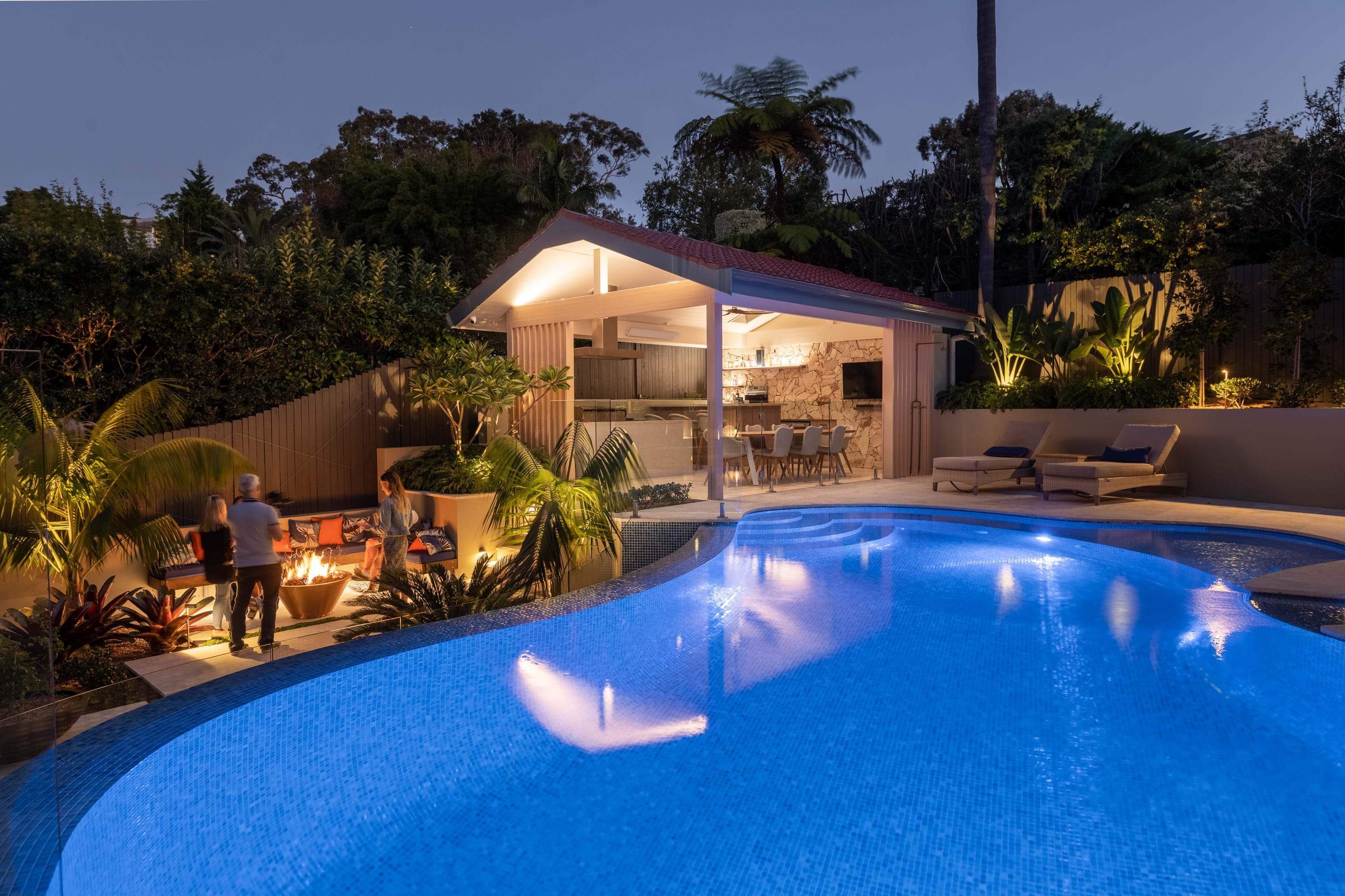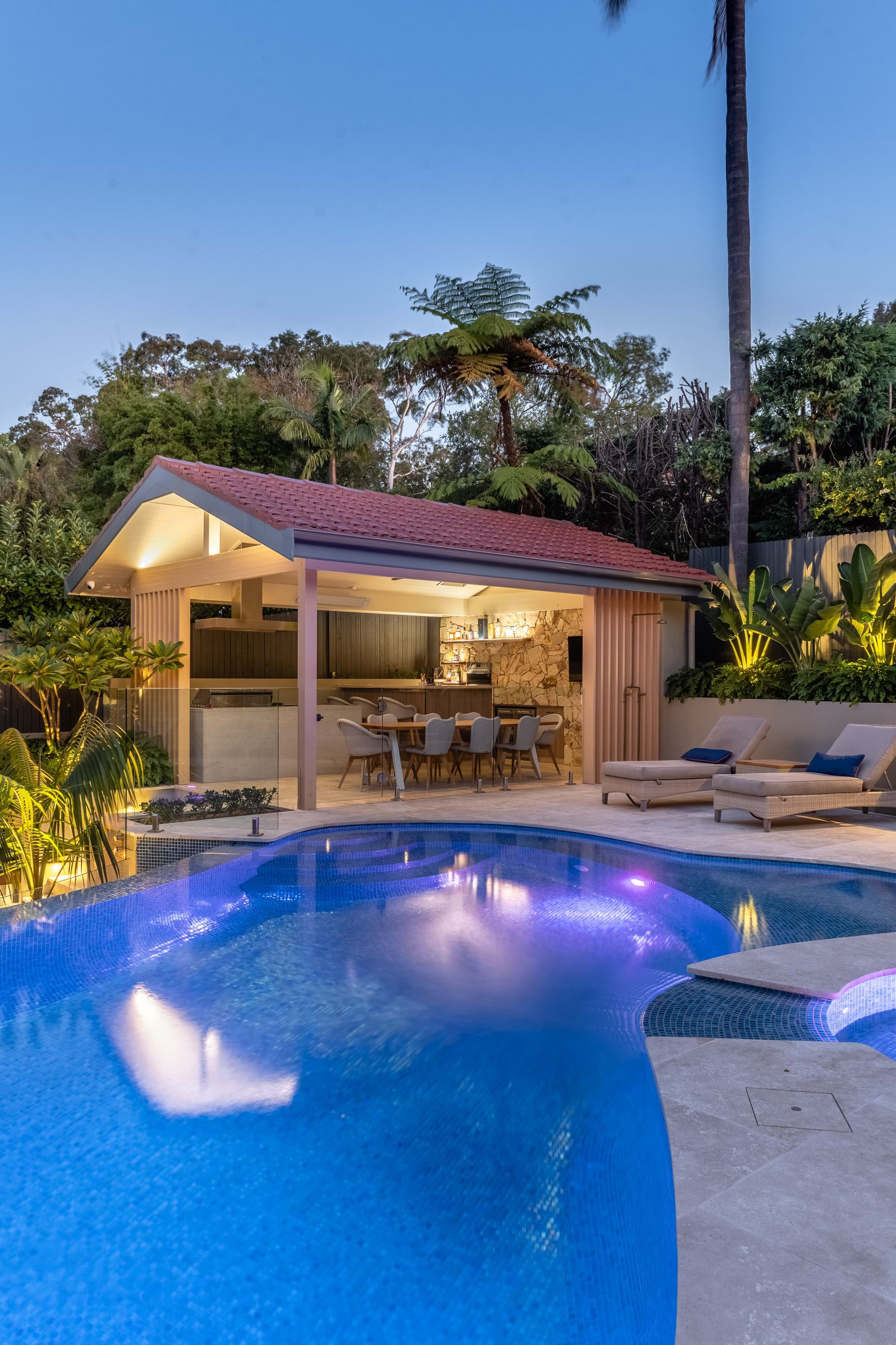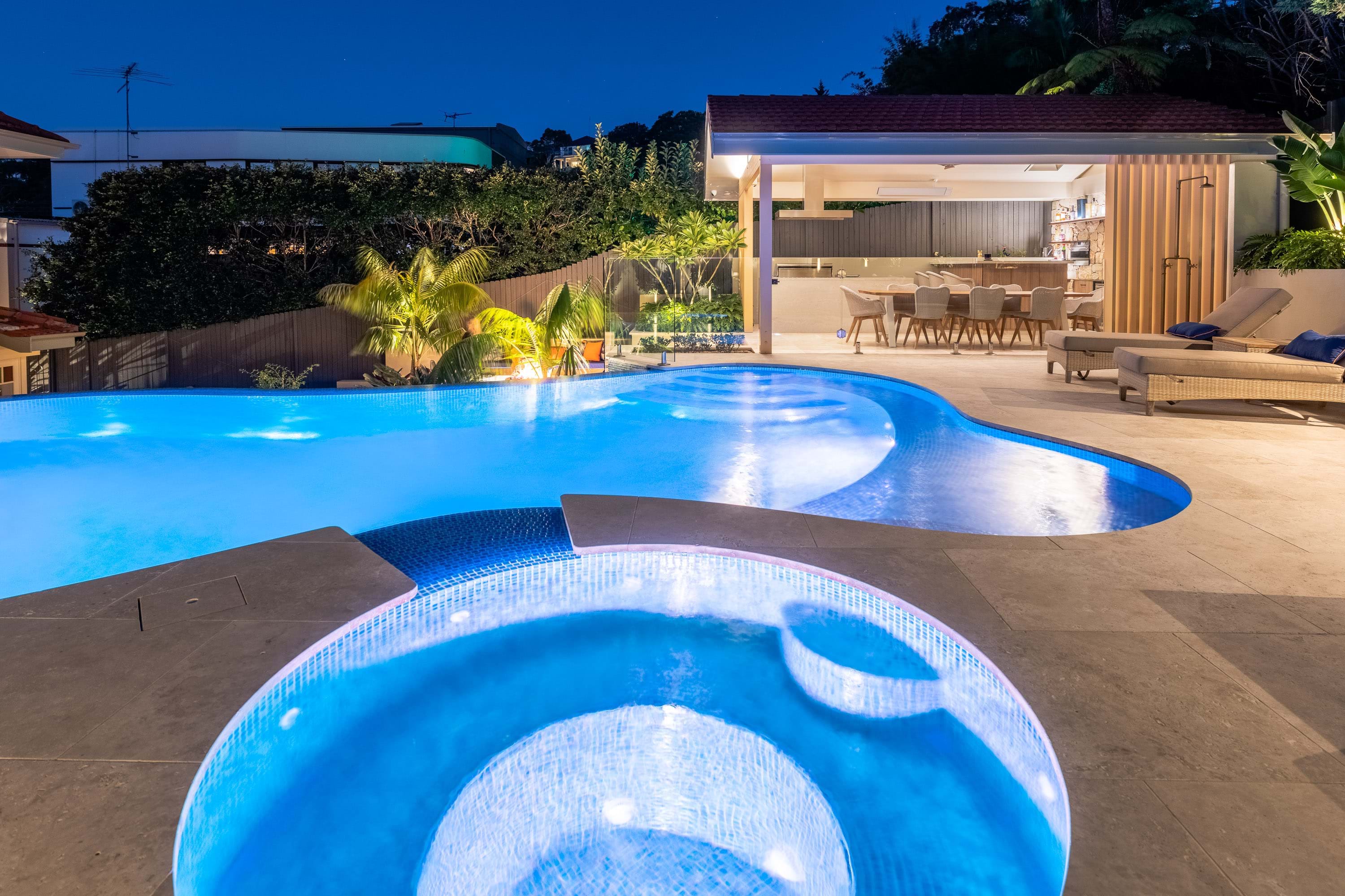 This design added a whole new level of opulence and relaxation to this property. Removing the lip from the pool creating a spill-over infinity edge was a bold move that instantly activated the connection between the house and backyard. A series of resort-style outdoor rooms mediate the considerable level change across the site with generous proportions which suit the scale of the home.