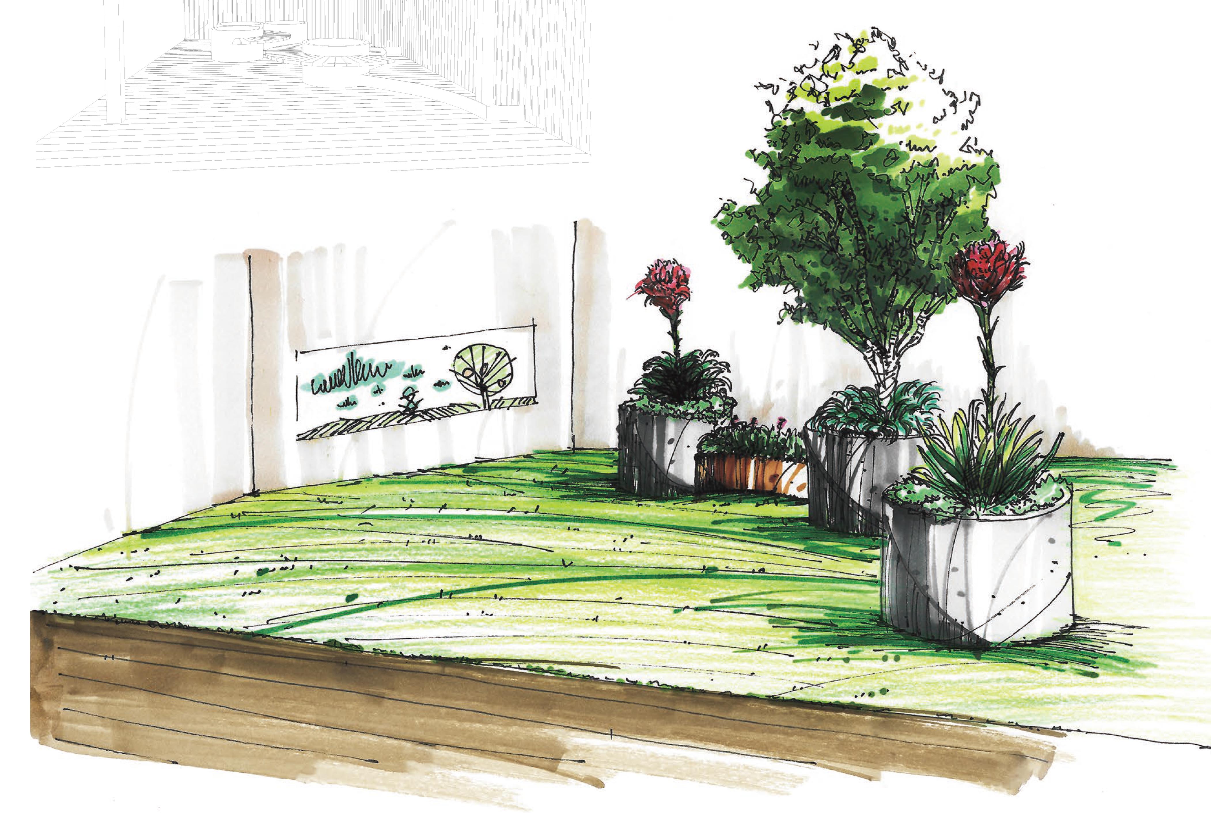 The name ‘Sanctuary ‘ describes this plan beautifully. A lot of thought has gone into creating a design that can be relocated in the future. Some areas are private and enclosed whereas others have more transparency allowing views through to other buildings and areas. The emphasis on the ’Power of Plants’ providing clients and visitors with a homely feel and the feeling of safety and security in the individual garden rooms was well thought out in this plan.