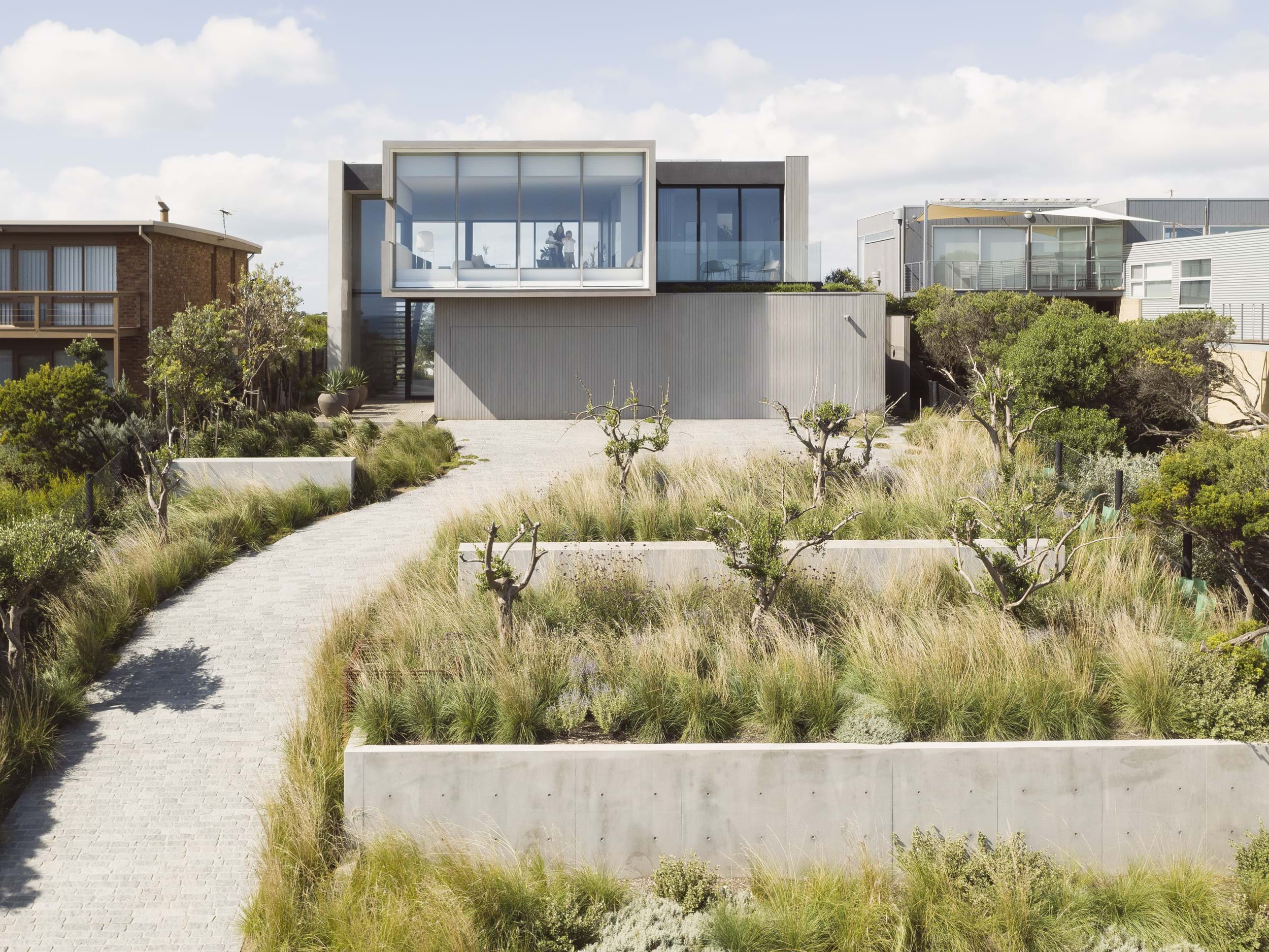 The plant selection for this project was challenging due to the exposed coastal site resulting in a unique planting palette combining natives, grasses and flowering exotics. There is a clever emphasis on textural plantings to blend with the locale.