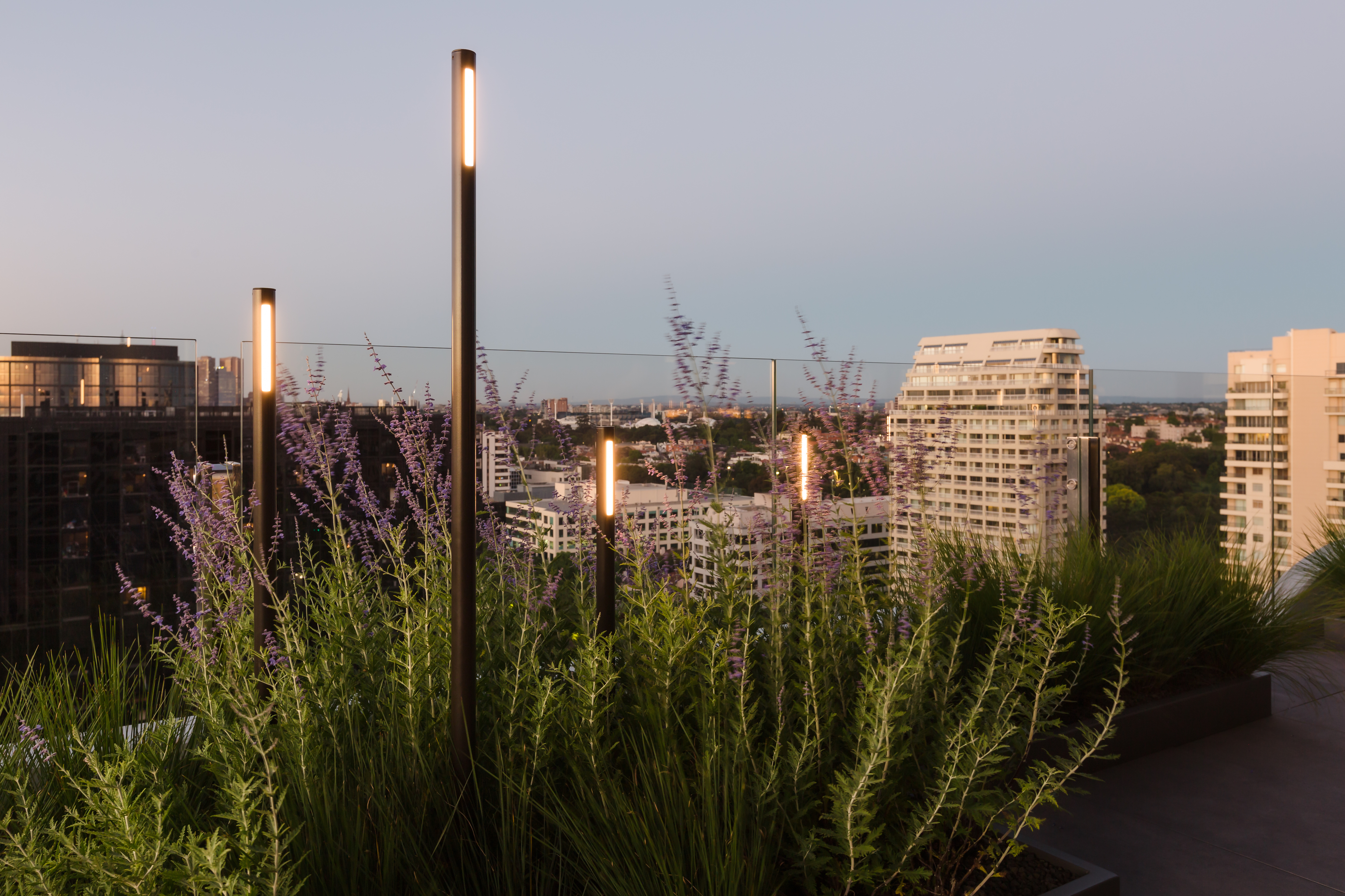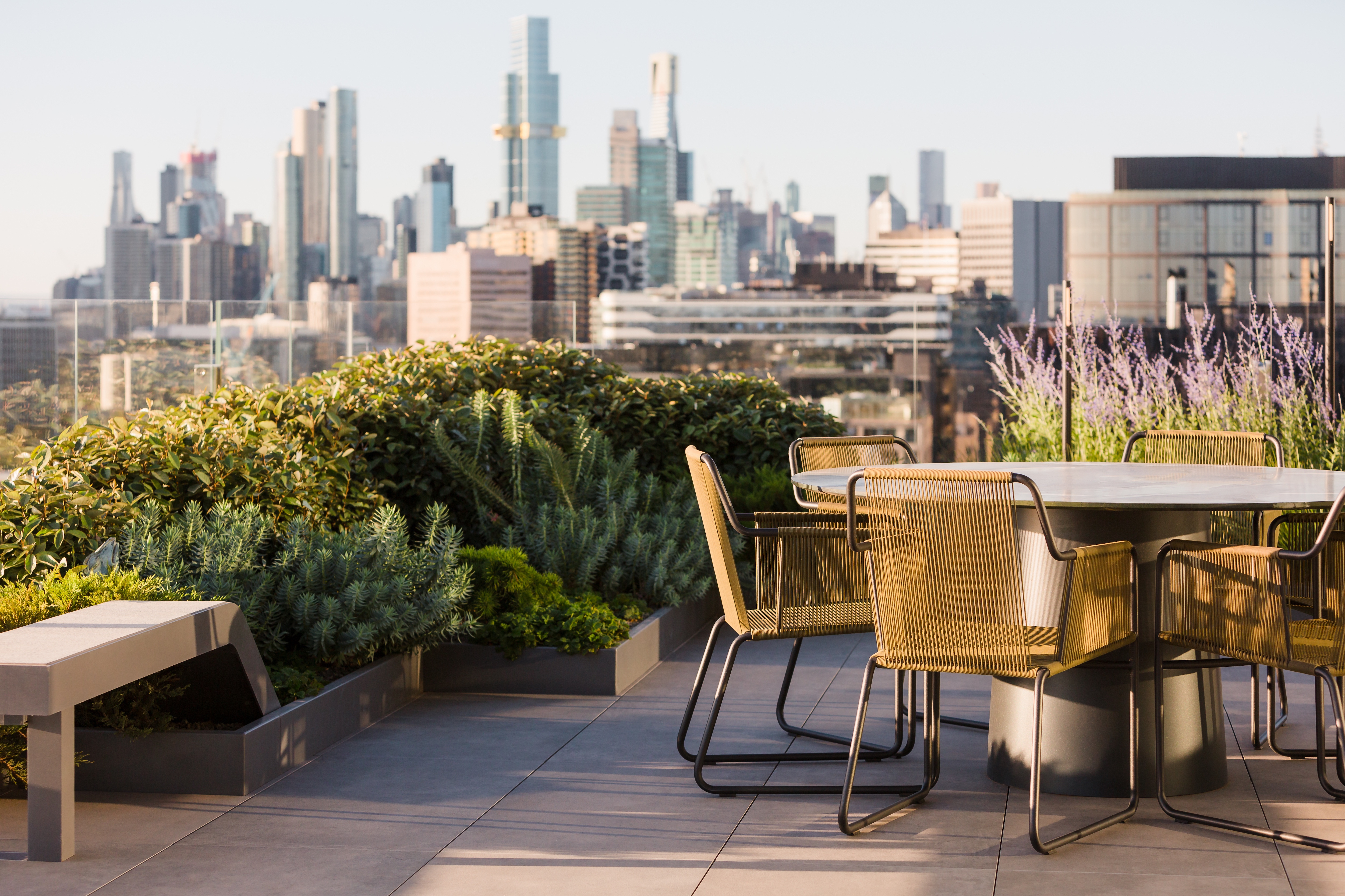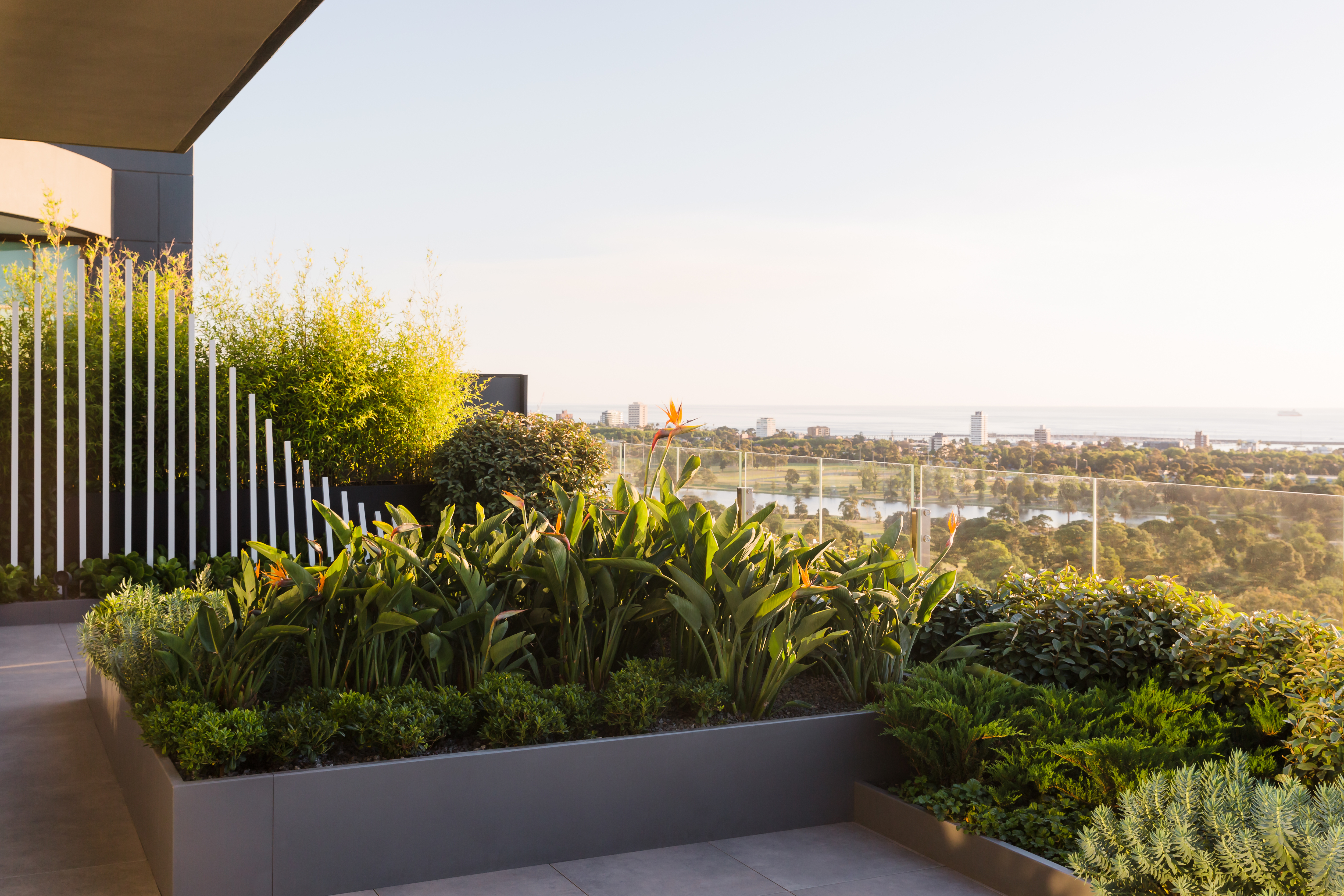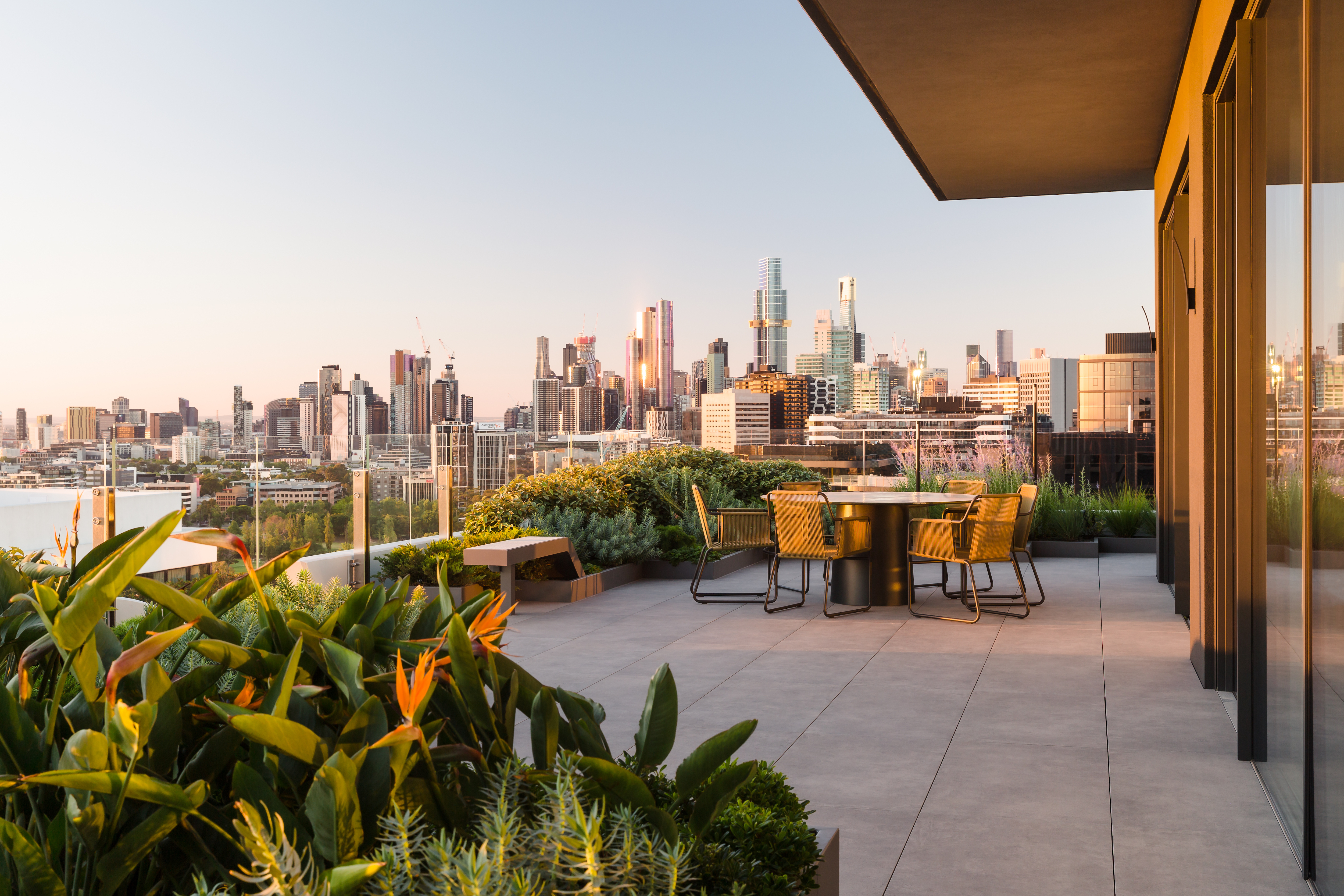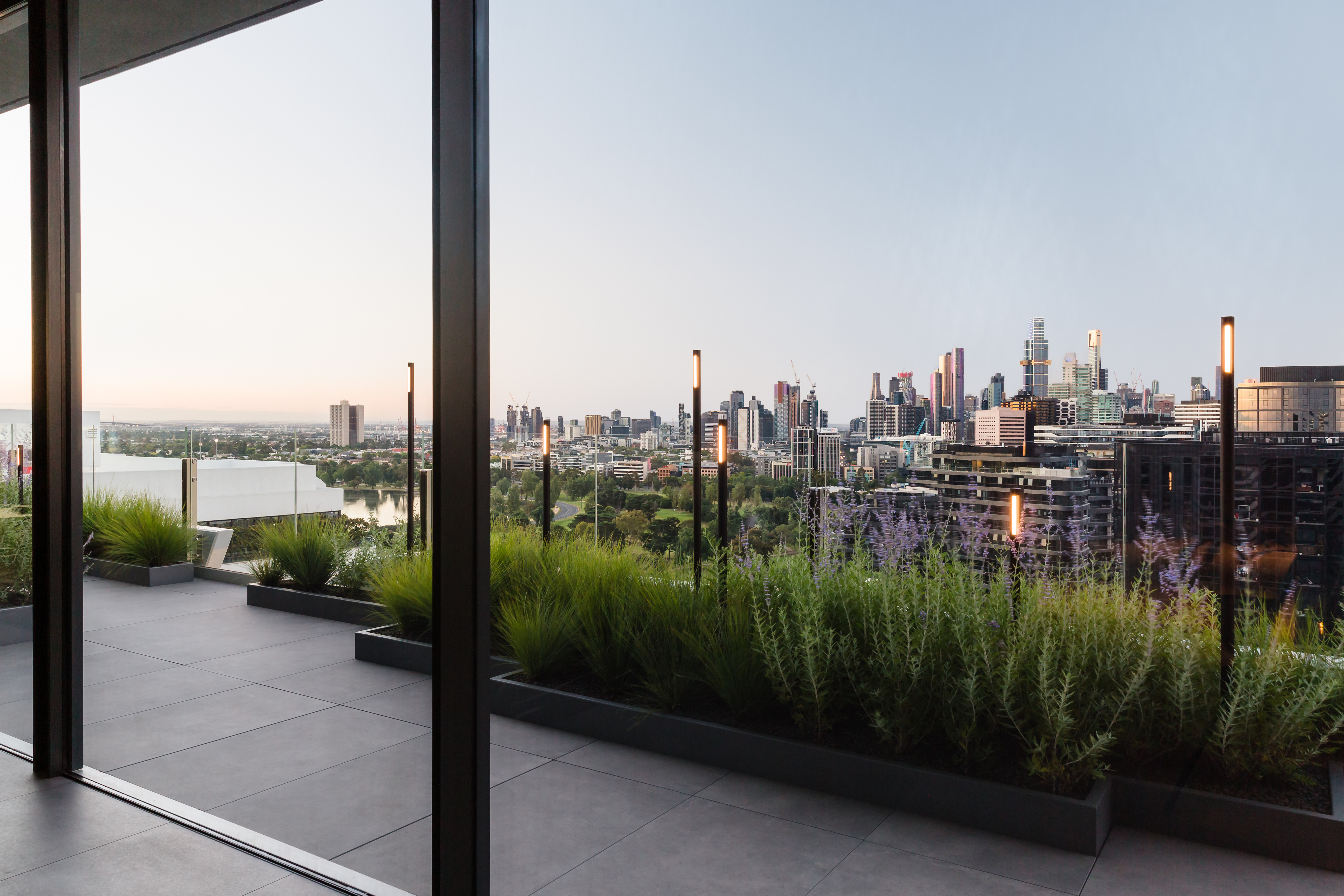 The oversized doors of the apartment and a frameless glass balustrade showcase uninterrupted views of the entire city. The terrace is the physical conduit. The garden punches above its weight creating unique rooms that enhance the experience.