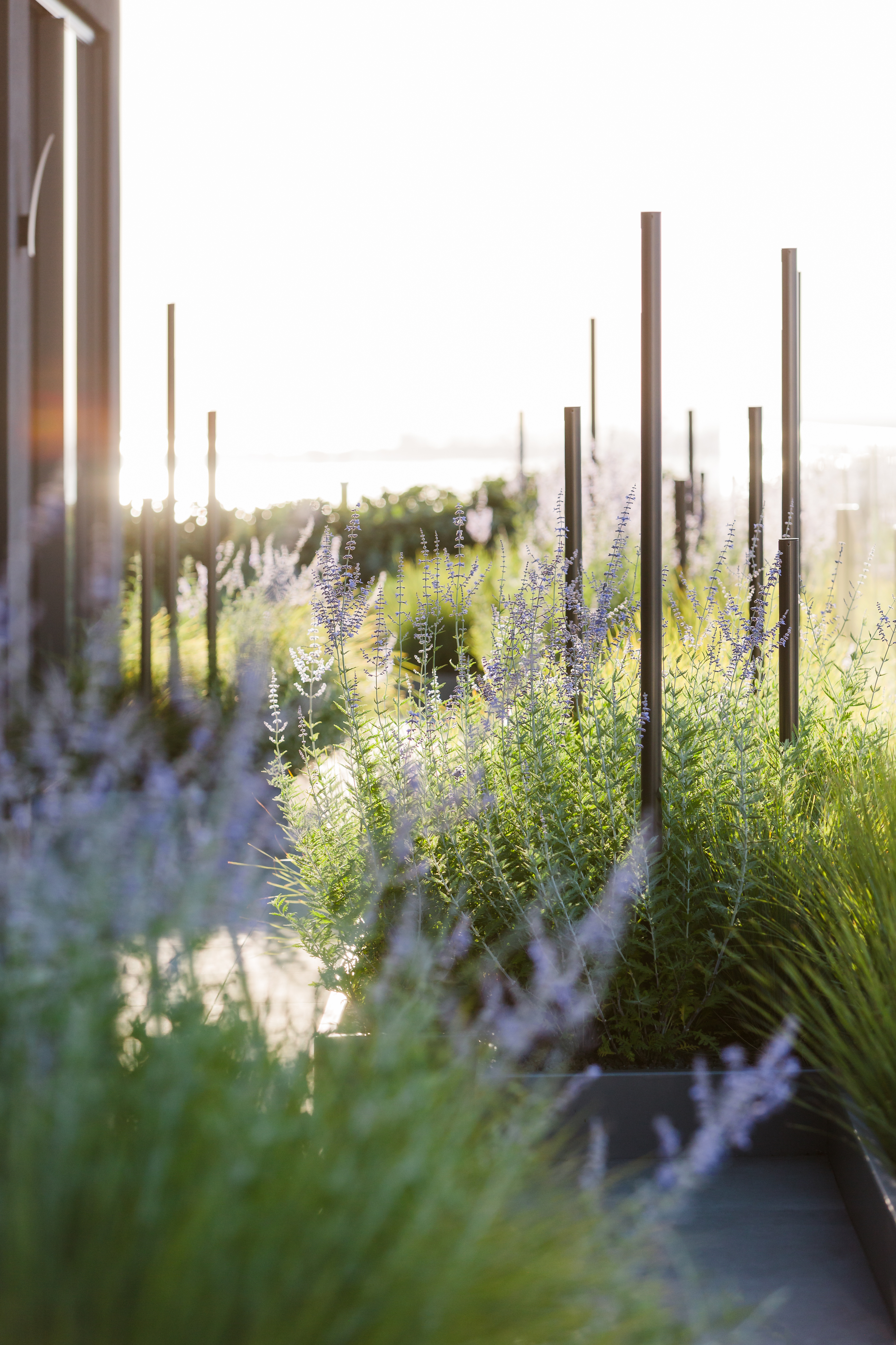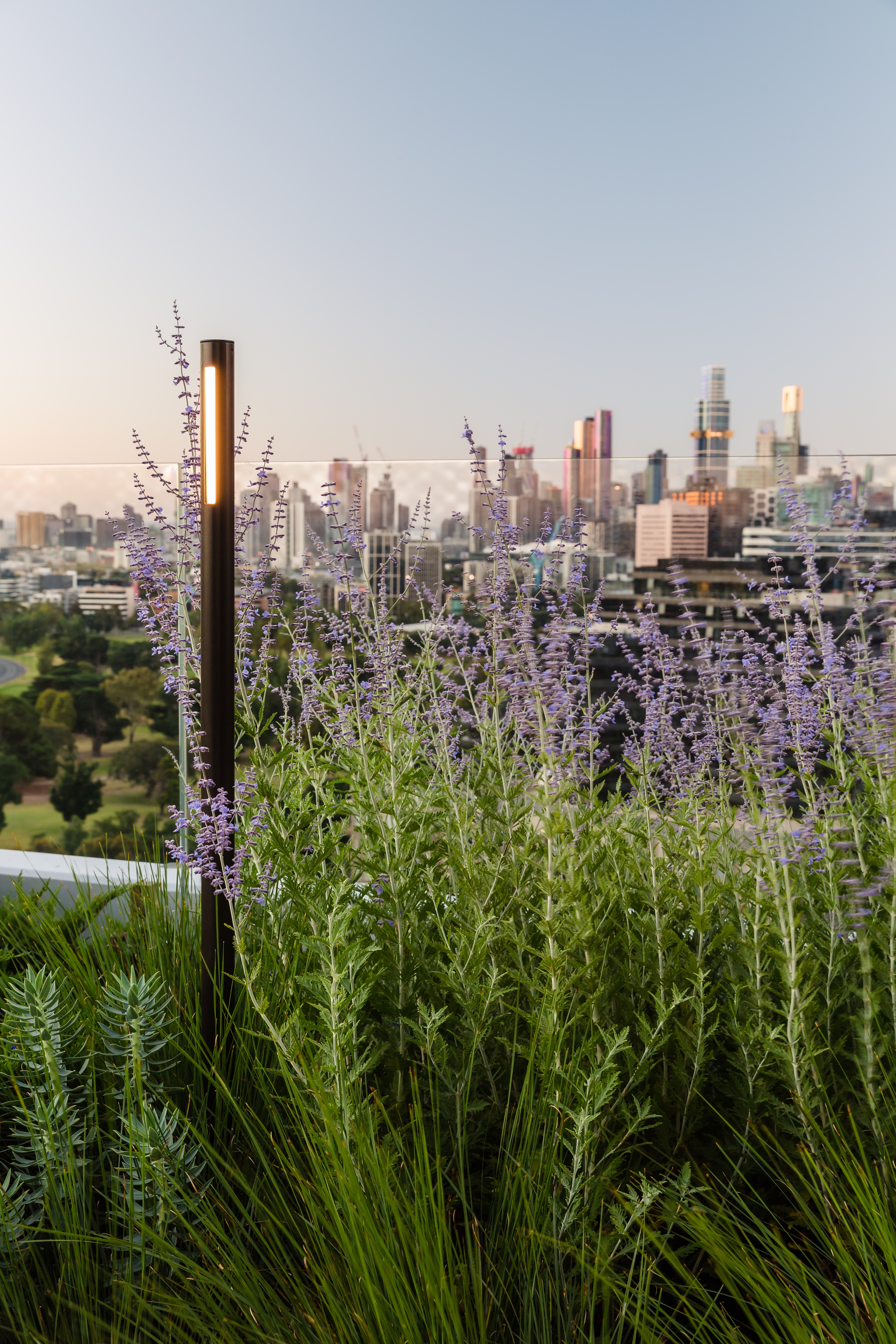 The curated planting of native and exotic species suited to the exposed windy site with a minimum depth of planting media was key to the performance and creation of the garden giving it a strong sense of place.