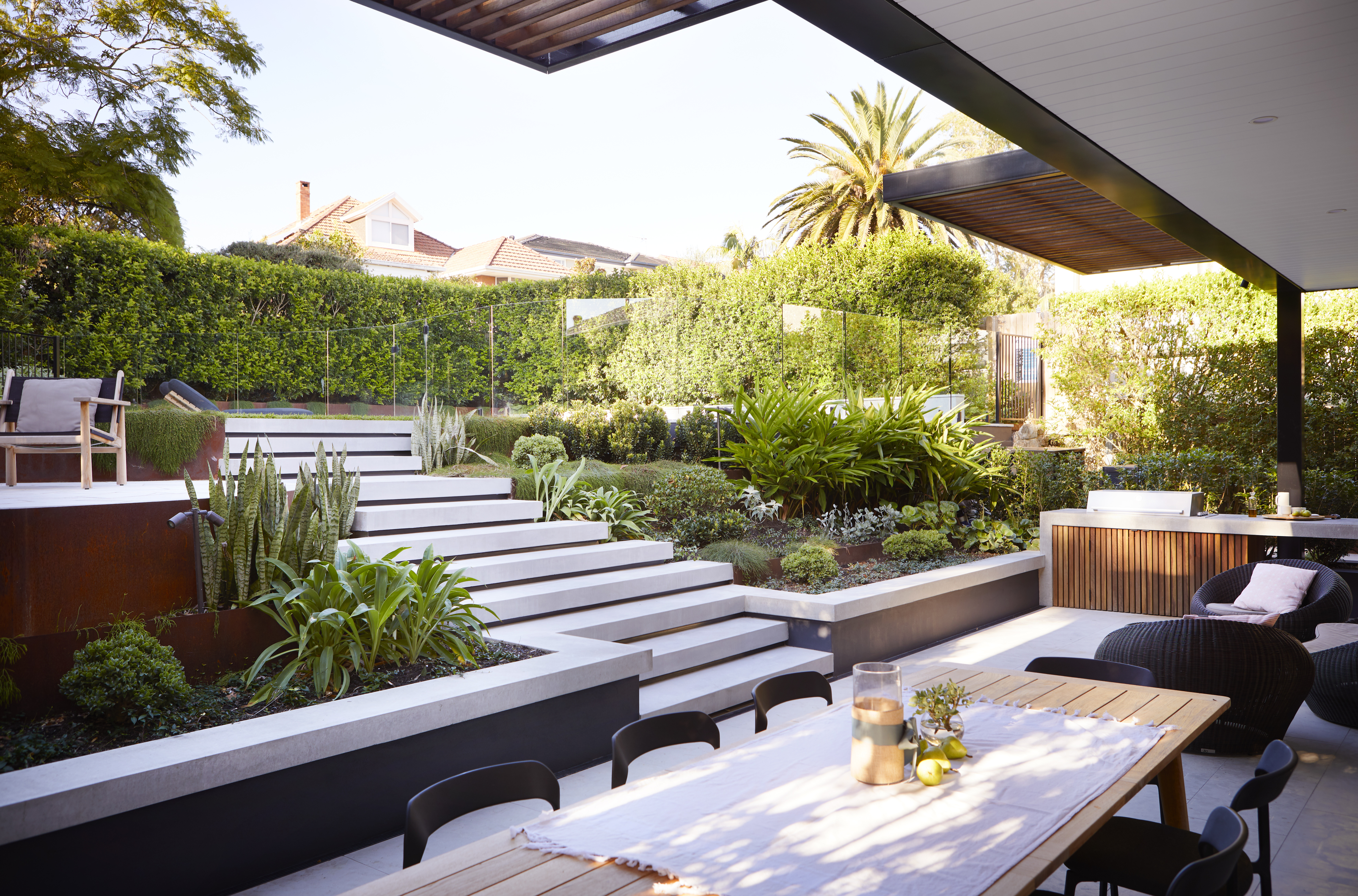 This property had a beautiful living area along the back of the house that connected to an underwhelming and underused backyard. Access between the two garden levels on the heavily sloped embankment was restricted to a small, cramped staircase. A key focus of the brief was to redefine the upper & lower levels of the garden, creating a seamless connection between spaces.