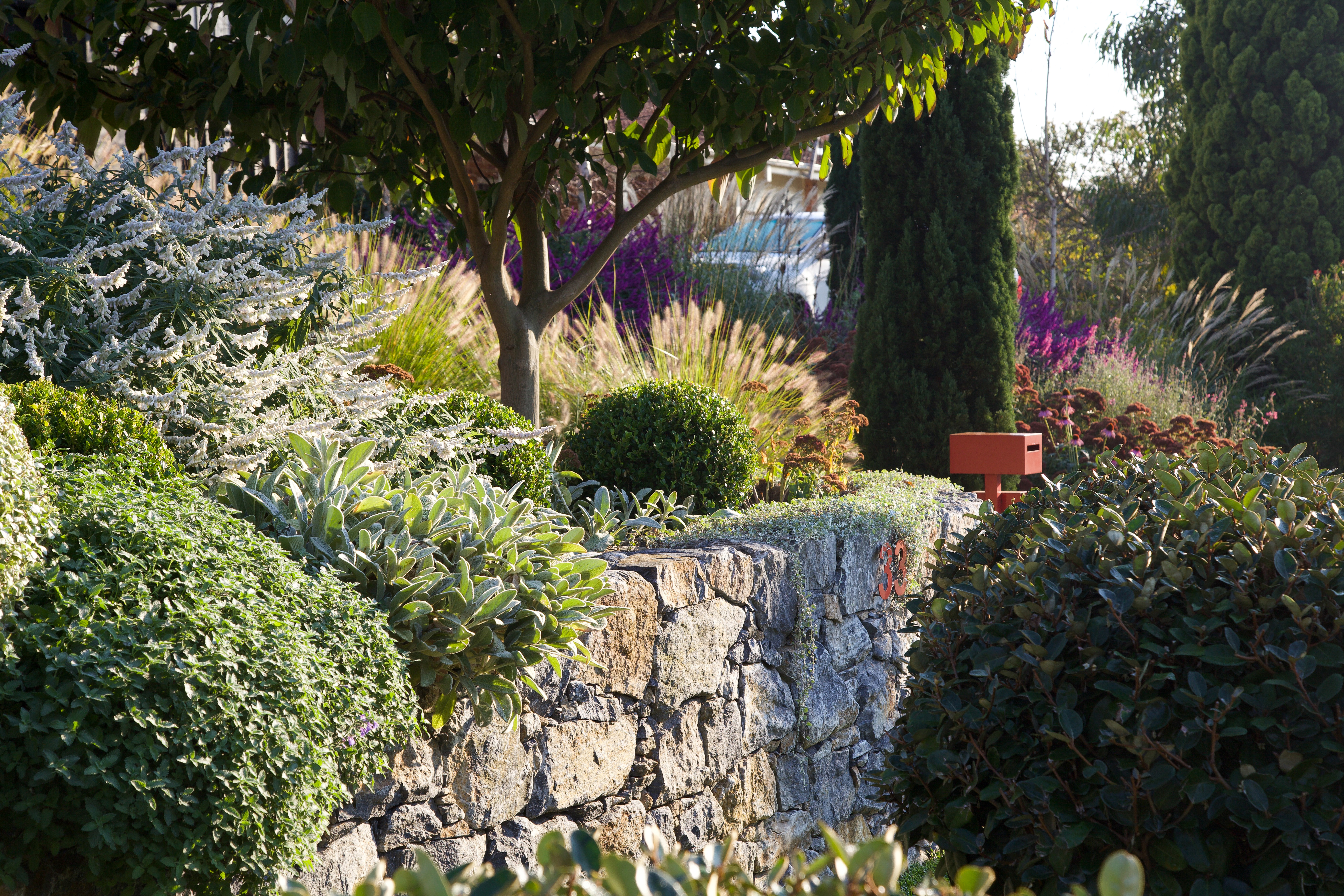 It was to maximise the street appeal of the property with a modern cottage style garden with soft, colourful layered plants. Pedestrian access to the property was to be improved and new front walls installed to complement the planting.