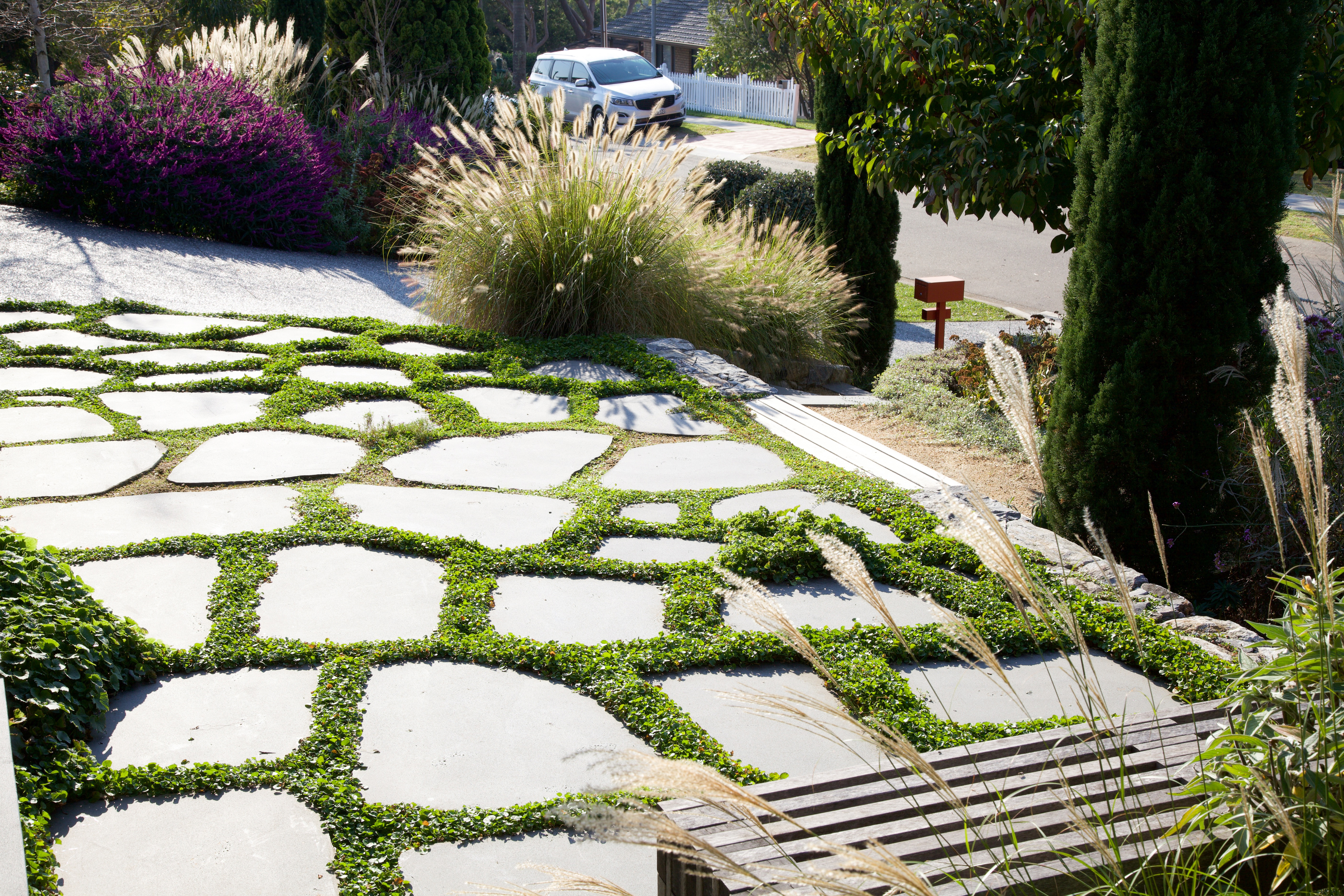 The brief was for a conceptual landscape and garden design for the front areas of the property, including a new driveway design. The design was to include a multi-purpose hard stand area in front of the house to be used as a car space, seating and a focal point of interest.
