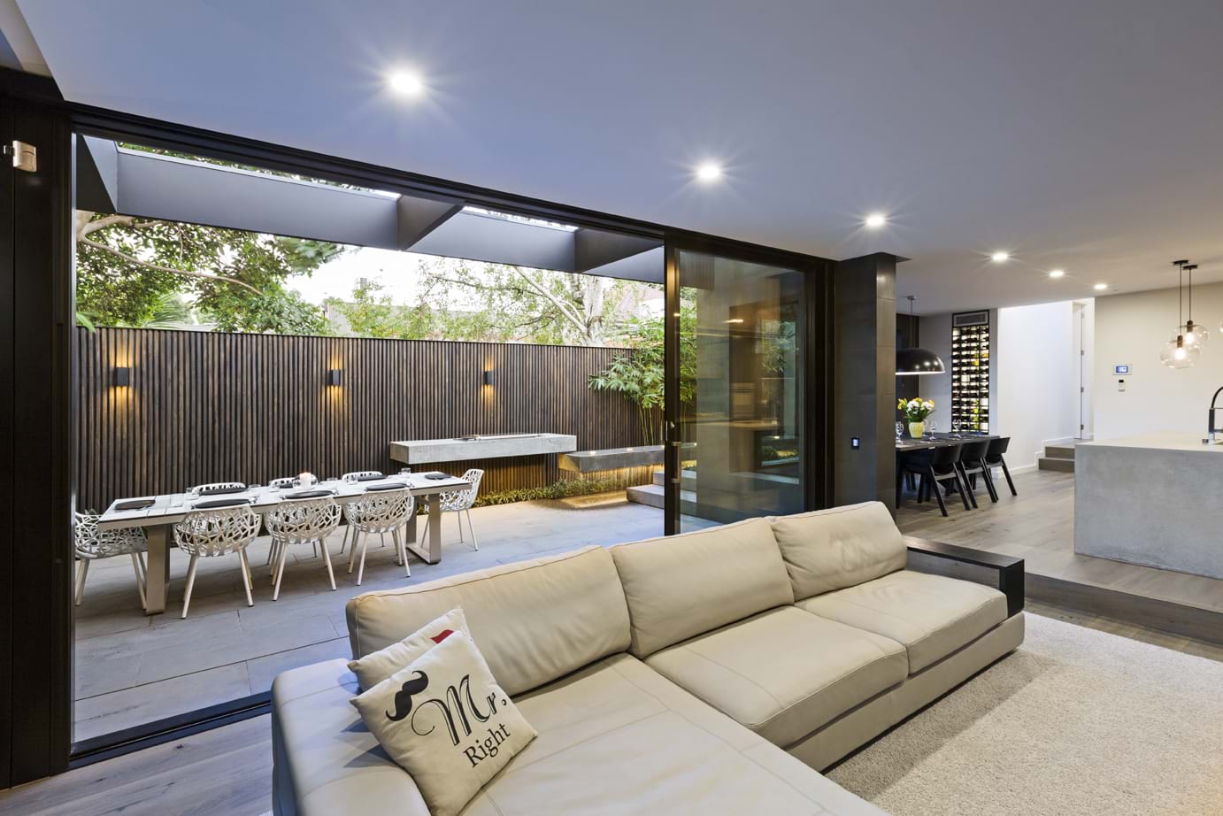 Being avid entertainers, the clients desired a seamless transition between modern indoor and outdoor living. The key challenges were to create a bespoke water feature without any dangerous/ exposed bodies of water. The end result delivered against all key criteria and challenges, featuring a 5m long monolithic water feature with 1.8m cantilever floating BBQ.